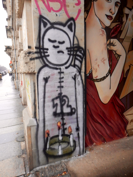 Der Text zur Katze an der Königsbrücker Landstraße in der Nahe vom Heller lautet: „MOGEL AGH SONIKE” oder so ähnlich und ist vielleicht als Gegenstück zur Katzenfigur SONIC aus den SEGA-Spielkonsolen angelegt.