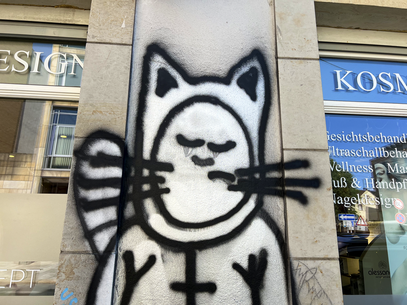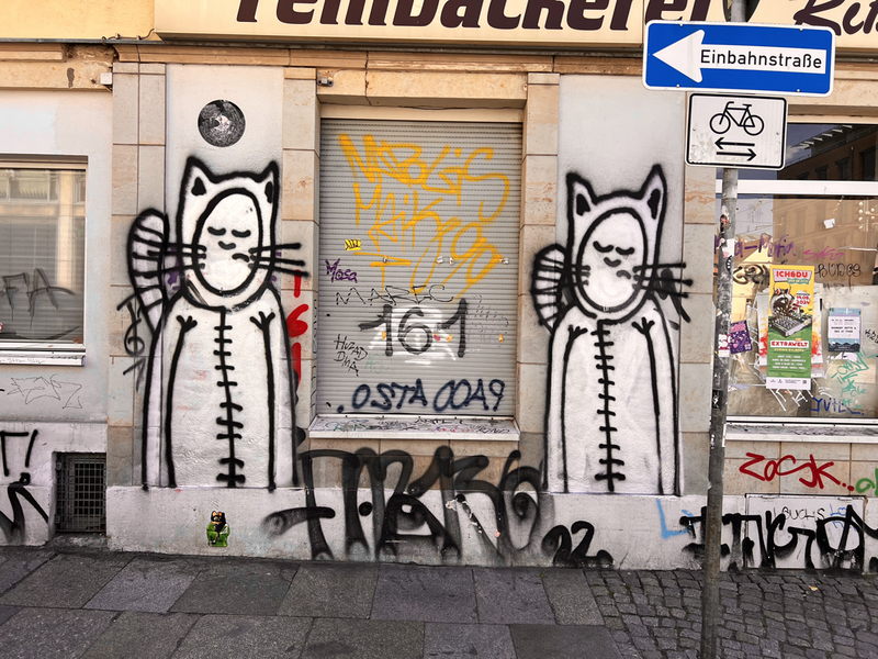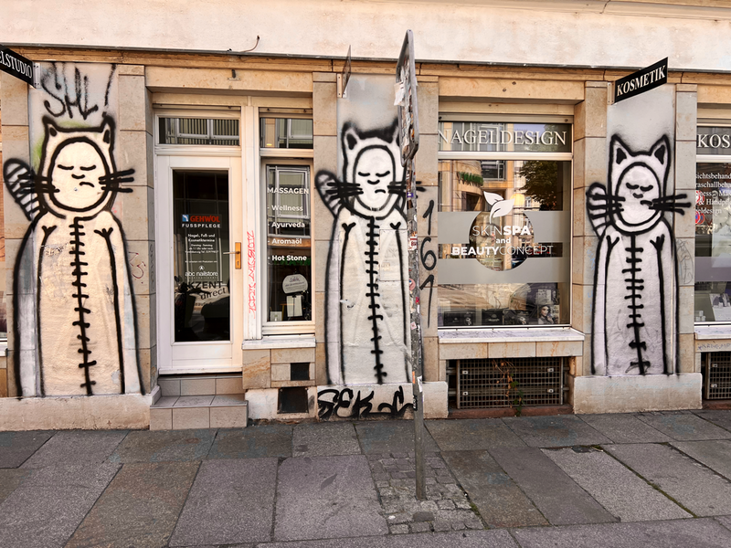 Die ACHSO-Katzen an der ehemaligen Bäckerei Rißmann auf der Luisenstraße Ecke Königsbrücker Straße haben kein Smiley-Gesicht mehr. Ich berichtete über den Vandalismus im Teil 31 der Serie 02 - der ACHSO-Katze. Und ich sage es nochmal: „Bravo und richtig so!!!”