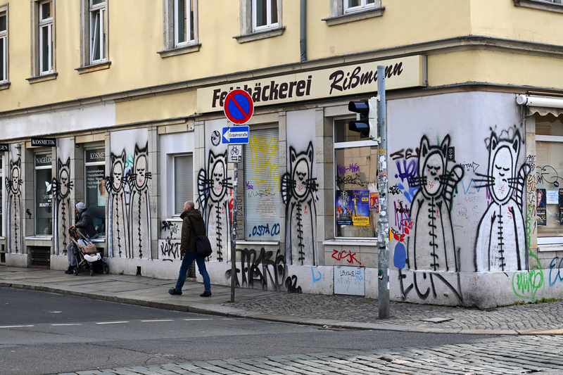 Nun ist es aber sozusagen zu einem richtigen Aderlass gekommen. Die ACHSO-Katzen an der ehemaligen Bäckerei Rißmann auf der Köngigsbrücker Straße waren schon einmal Gegenstand der Verunstaltung dieser Katzen. Das wurde aber später wieder berichtigt.