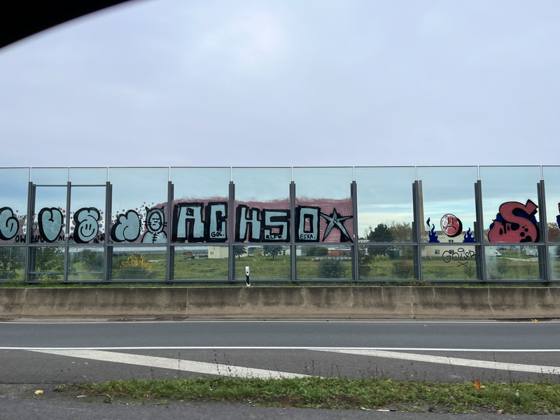 Wie versprochen gibt es nun bessere Fotos von der ACHSO-Katze auf Reisen. Auch hier gilt mein Dank nochmals an Teresa - tolle Fotos aus dem Auto. Dabei kam heraus, dass es zwei Katzen waren, die sich an der Autobahn per Anhalter aus dem Stab machen wollen.