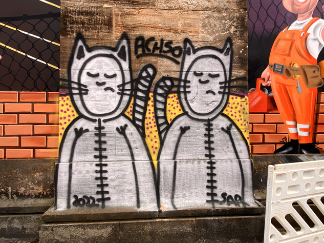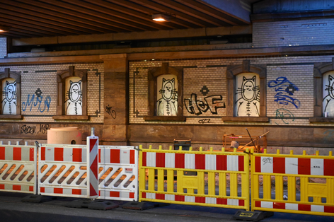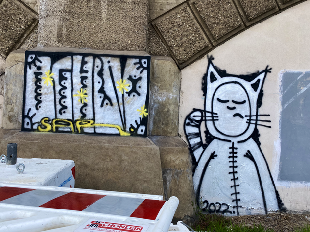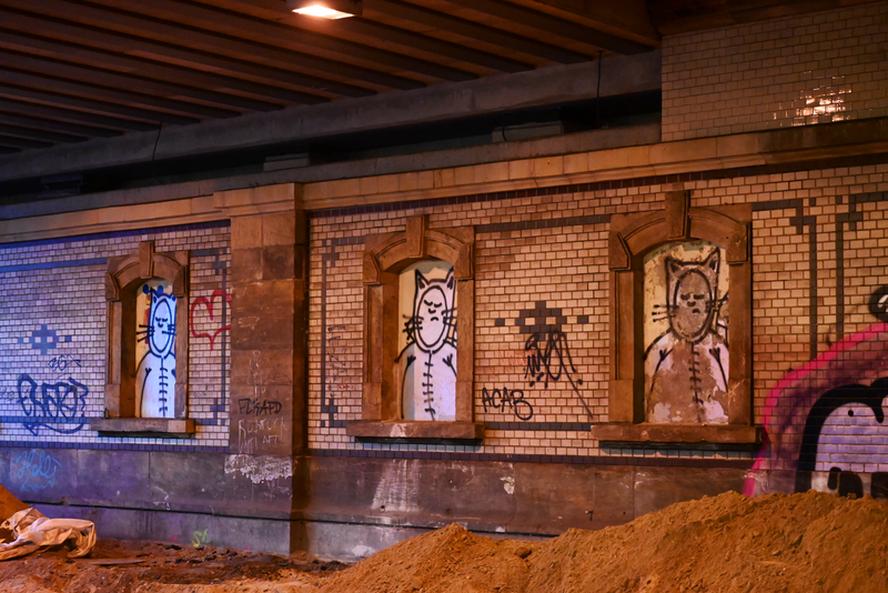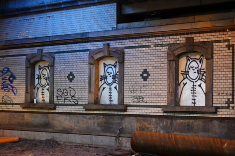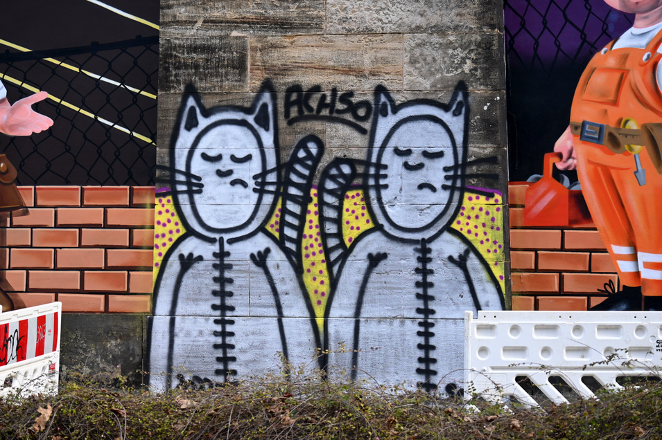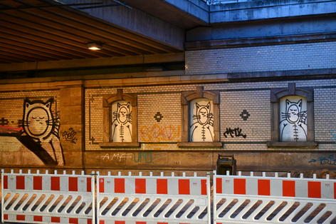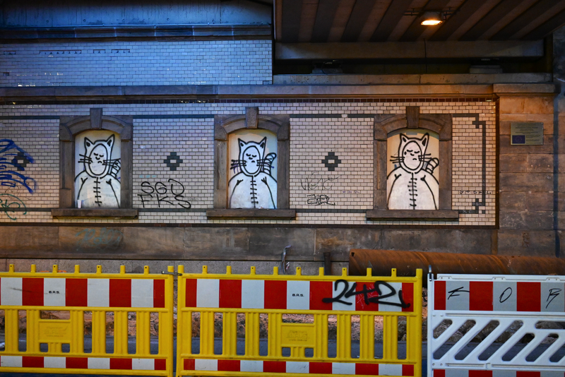 Die Katzen-Ahnengalerie unter der Eisenbahnbrücke Hansastraße am Neustädter Bahnhof