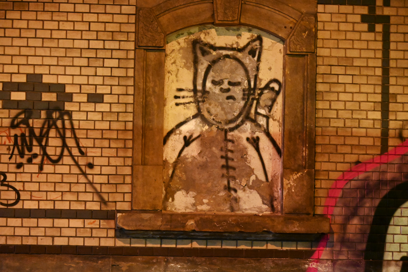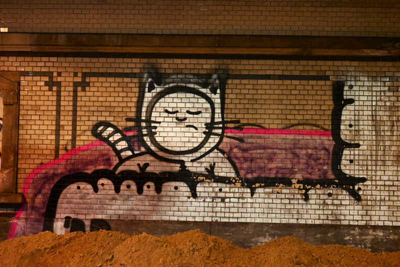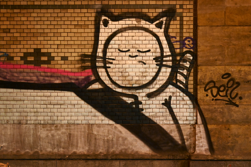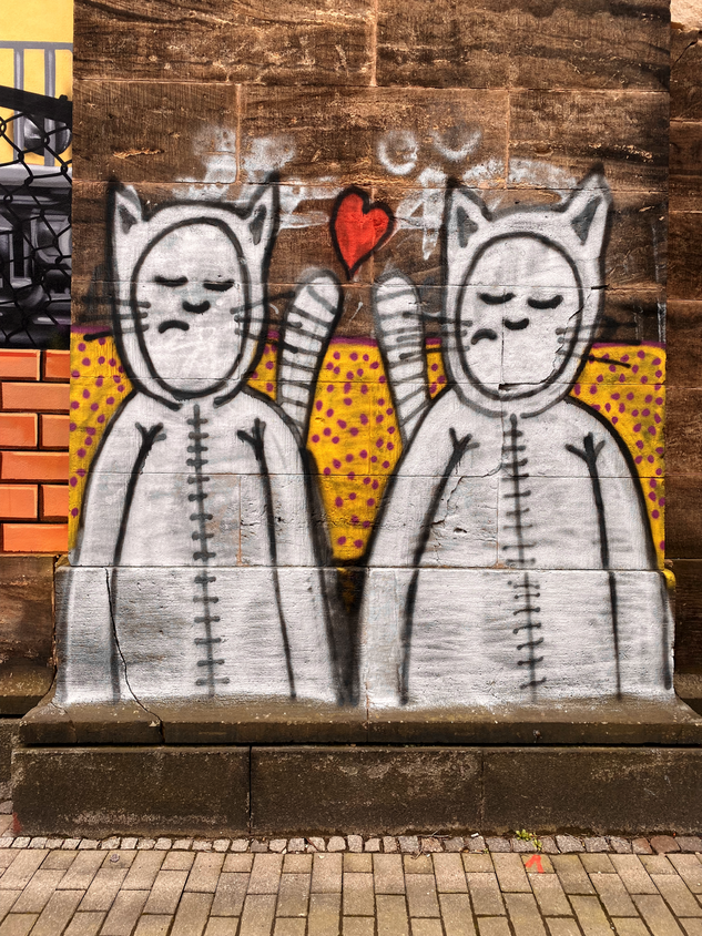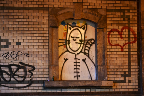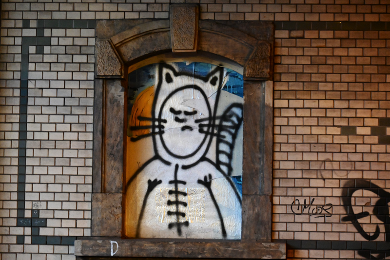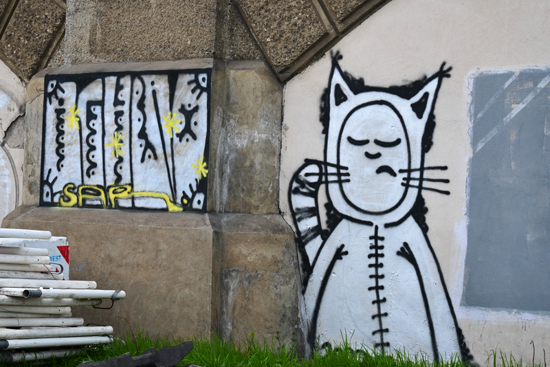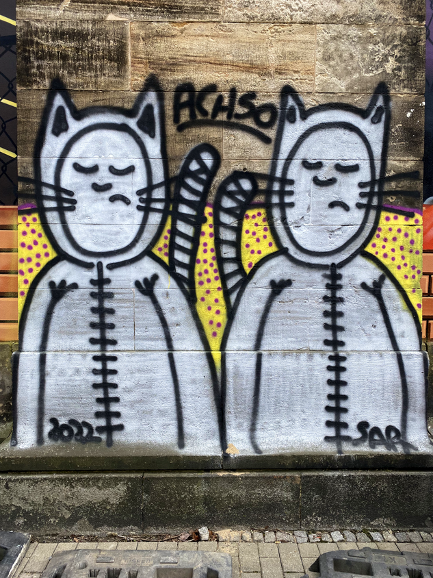 Die Katze schleicht um den Neustädter Bahnhof. Im Gebiet um den Neustädter Bahnhof in Dresden habe ich ganz viele neue Katzenbilder entdeckt. Nicht ganz neu aber auffällig sind dabei die Katzenpaare. Sehr schön sind auch die vielen „Katzenporträts” unter der Brücke auf der Hansastraße im Rahmen. Sieht aus wie eine Ahnengalerie.