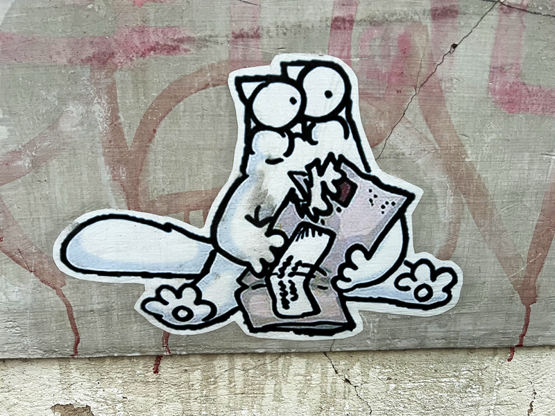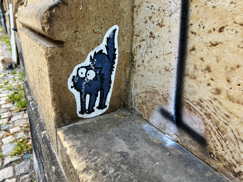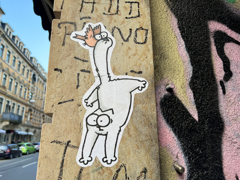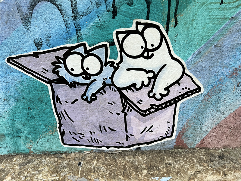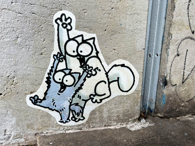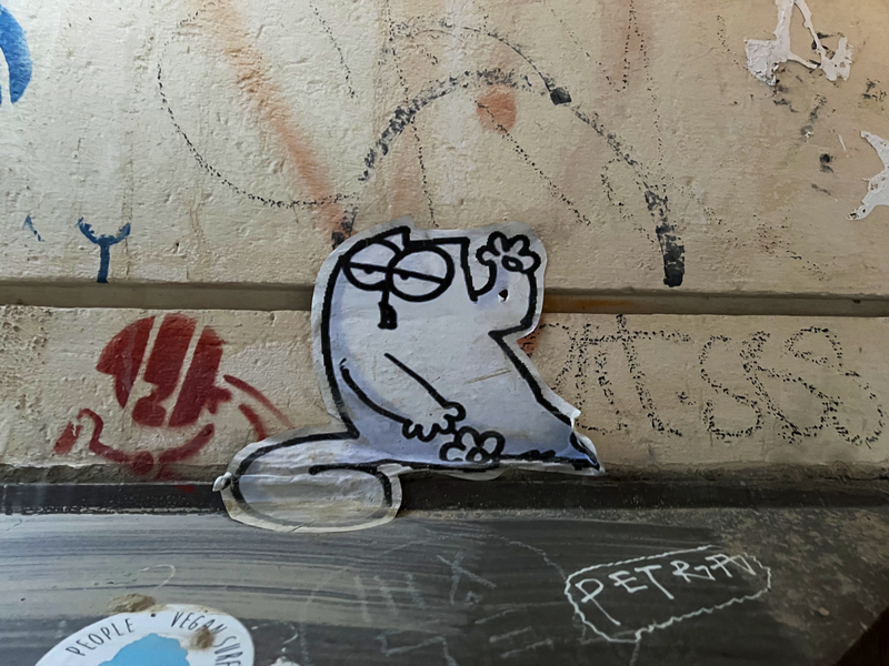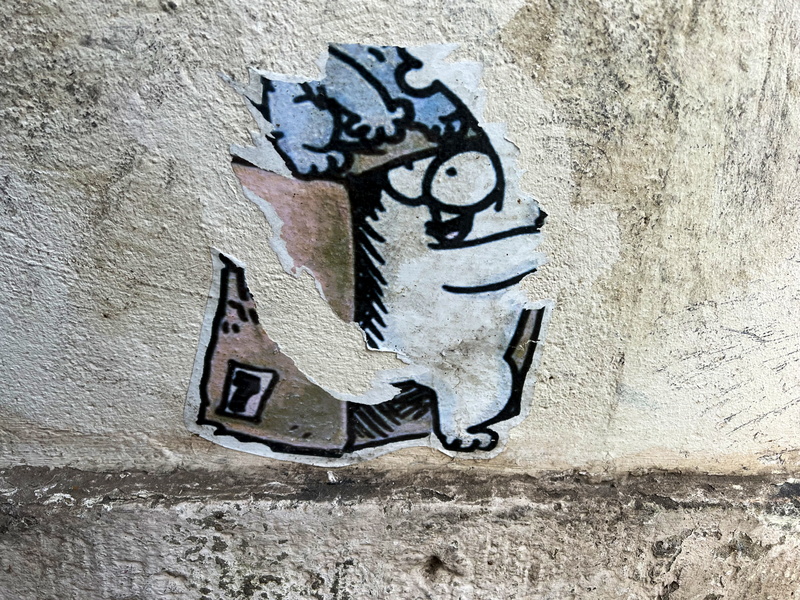 Aber auf die Paste-Up von Simon‘s Cat ist Verlass. Es sind zwar nicht viele neue Katzen aufgetaucht, aber immerhin ein paar. Neu ist auch, dass die alten und neuen Katzen an besonderen Platzen angebracht werden, wie z.B. über den Buchregal auf der Kamenzer Straße. Hier die alten und neuen Simon‘s Cat auch aus den grauen Novembertagen: