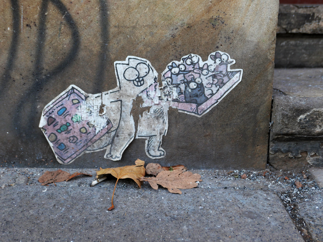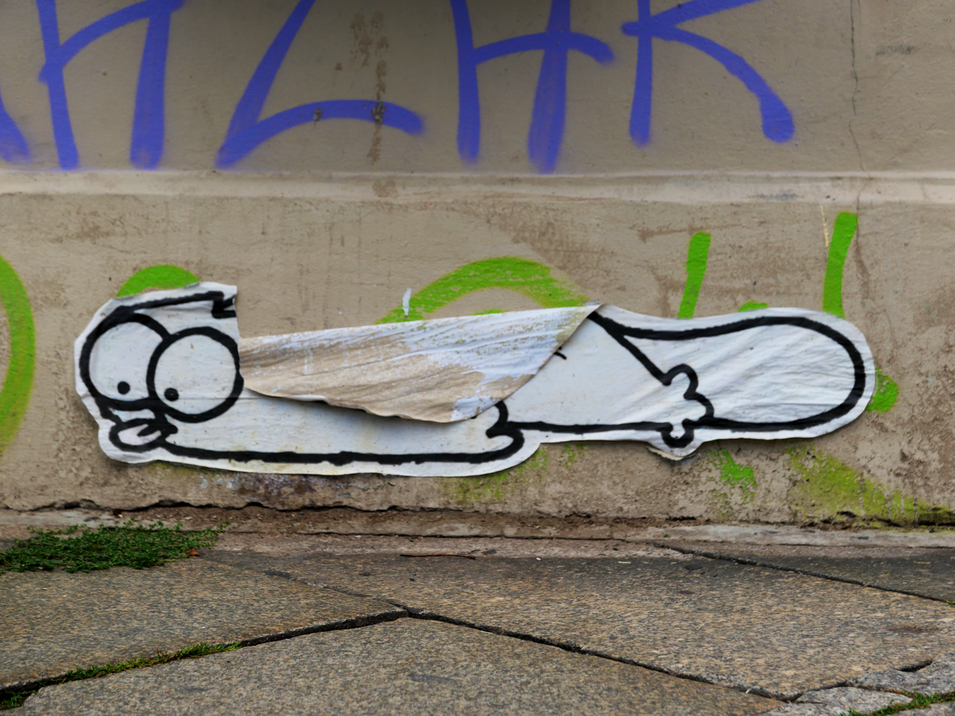 Aber ein was ganz Neues habe ich doch noch entdeckt. Ein Paste-Up-Graffiti, dass von einer Simon‘s Cat begleitet wird. Hier die alten und neuen Fundstücke von Simon‘s aus der Dresdener Neustadt:
