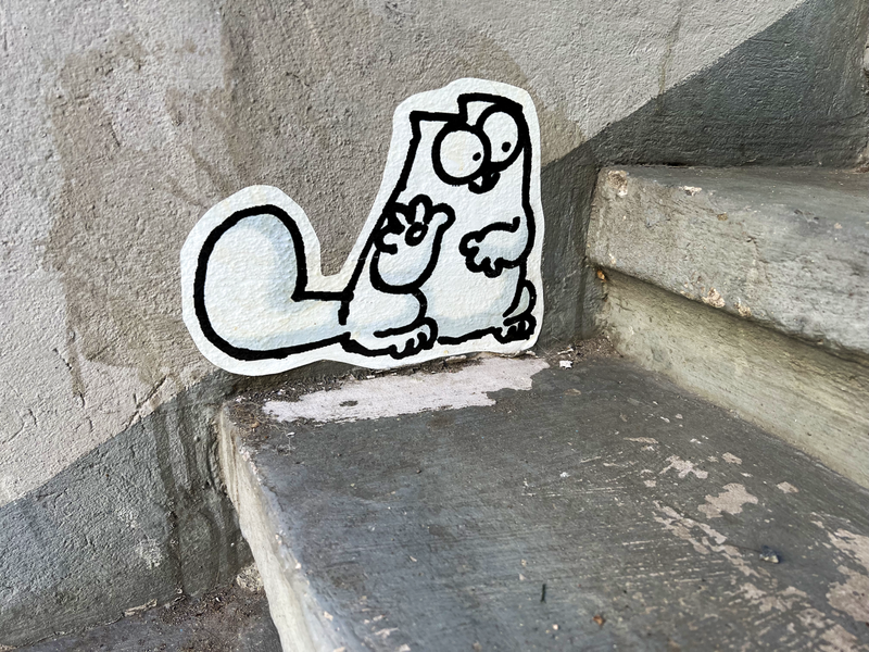 Wochenlang, ja monatelang war der Stammplatz von Simon’s Cat an der Ecke Bischofsweg/Kamenzer Straße verweist. Man hatte das Gefühl, Simon‘s Cat hatte sich hinter dem Ofen ein warmes Plätzchen gesucht. Aber nun ist sie wieder da an alter Stelle. Und wie es sich gehört erstmal mit „ehnen Schälchen Heßen” - wie der Sachse sagen würde. Für alle die es nicht verstehen, mit einer Tasse heißen Kaffee :).