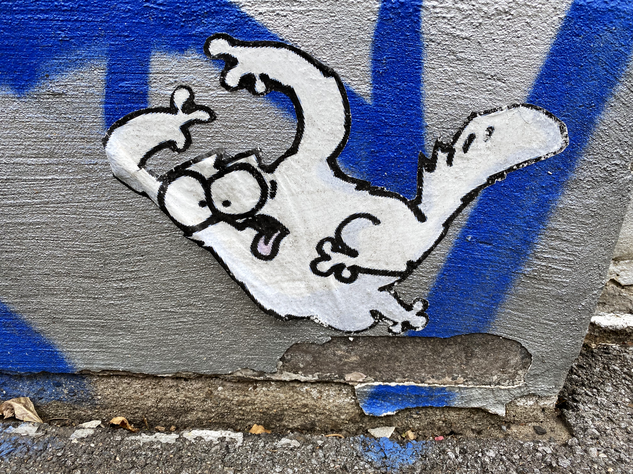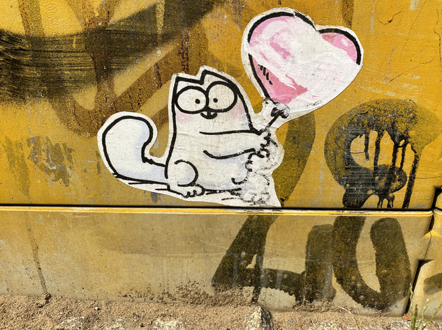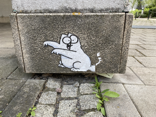 Leider sind die Paste-Up-Katzenmotive sehr anfällig gegen verschiedenste Umwelteinflüsse (Regen, Wind, Schmutz,…). So sind die schönen Motive teilweise schon beschädigt und werden auch nicht das ewige Leben haben. Aber sie sind ja dokumentiert. Die letzte neue Knubbel-Katze schleicht im Waldschlösschen umher. Ich habe sie auf dem Sudhausweg getroffen.