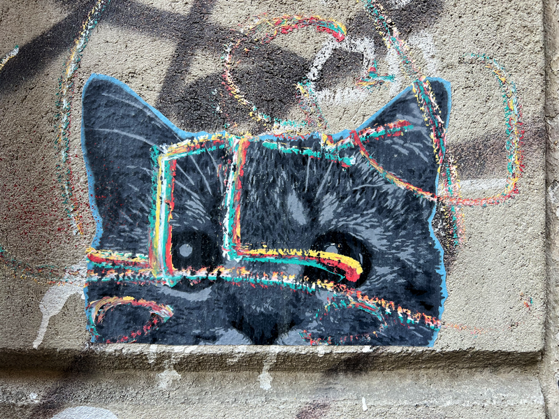 Es gibt nun auch schon einen Teil 2 der Kantenkatze. Interessant dabei ist, dass die Augen nicht immer gleich sind. Auf dem einem Bild ist dieser durchdringende Blick zu sehen. Leider ist die einen Kanten-Katze durch farbige Kreide etwas verschmiert.