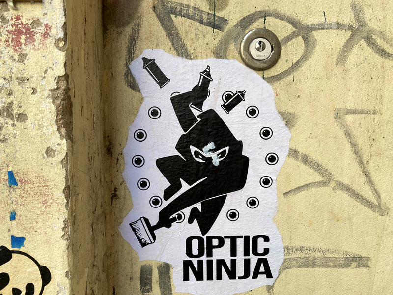 Eine neue Serie ist der Sprayer „OPTIC NINJA”. Er zeigt sich in einem Ninja-Kämpfer Kostüm mit Maske und Spraydosen oder Farbbürste. Es könnte natürlich eine Leimbürste sein, wegen der Paste-Up-Graffitiform.