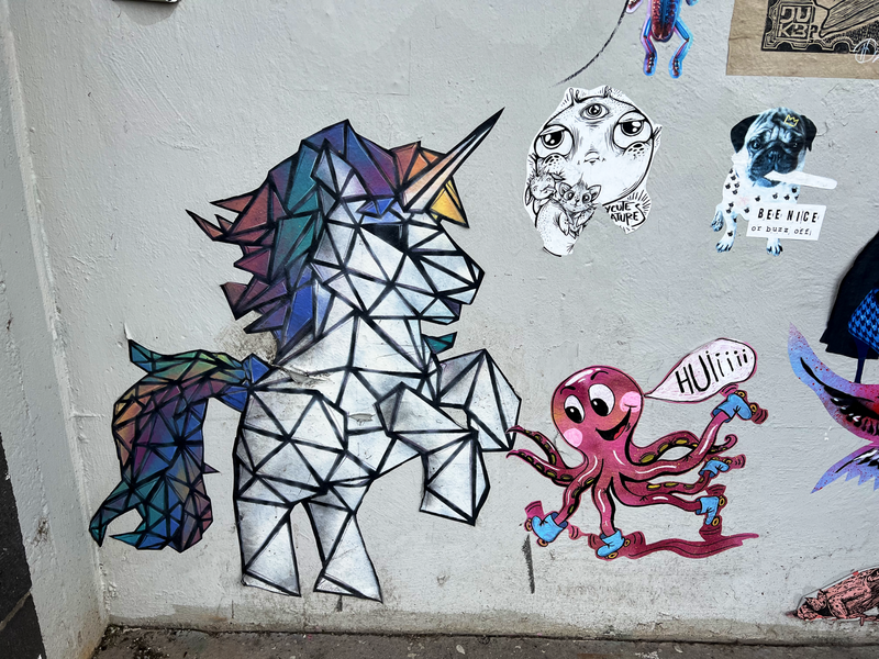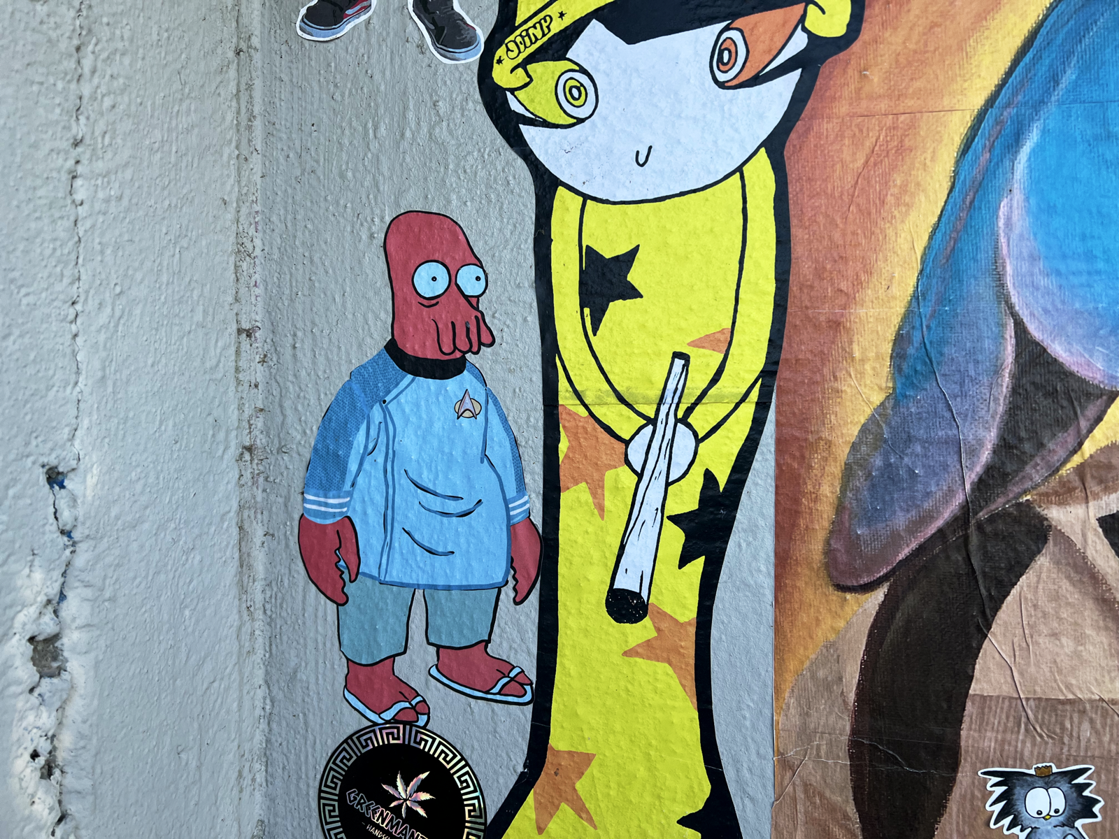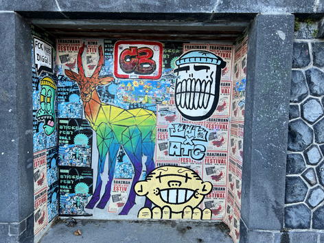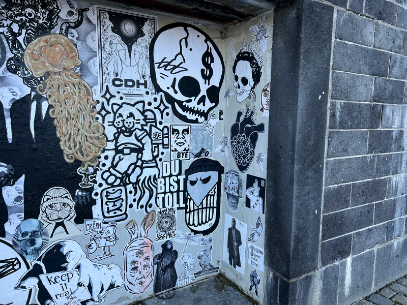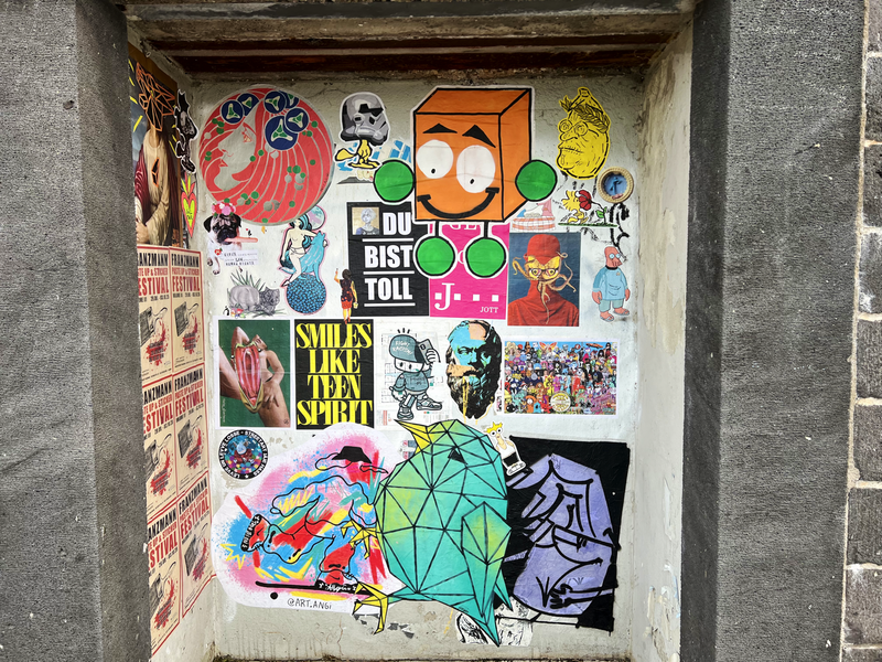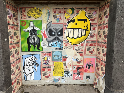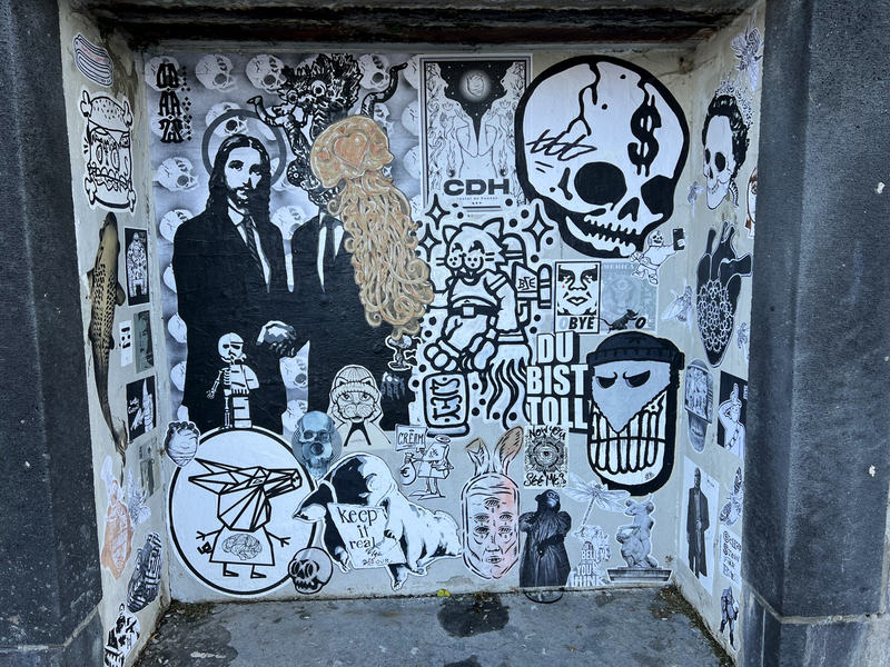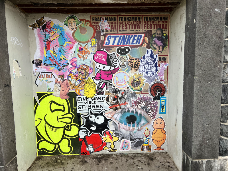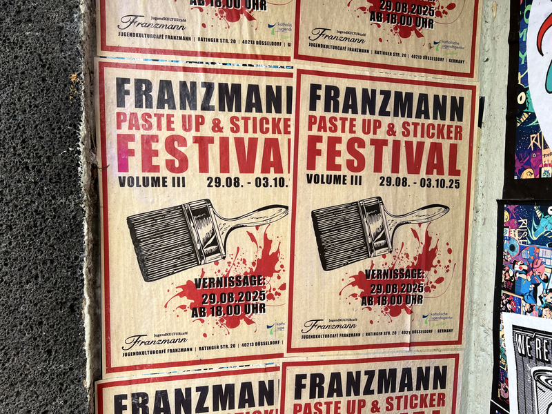 Von 28.09. bis zum 03.10.2025 veranstaltete das Jugendkulturcafé FRANZMANN nun schon das dritte PASTE Up und STICKER Festival. In der Stadt habe ich davon nicht viel mitbekommen. Aber unten am Rhein ist dafür ein wahres Feuerwerk von Paste-Up-Graffiti und Sticker zu sehen. In der „Kasematten-Galerie” kann man angeblich Paste ups und Sticker von internationalen Größen, wie Andrea Aldam (Italien), Merioone (Italien), Kelu Abstract (Frankreich) Art.Angi (Spanien), Tamm Shinzo (JPN) und DMSTFF (UK) und vielen mehr sehen.