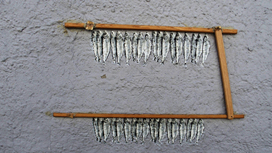 Besonders toll finde ich das Stencil-Graffiti des Fischerjungen mit den zwei Hering-Reihen. Den Künstler „TREF” kann man auch bei Google als recht bekannten Stencil-Graffiti-Künstler finden.