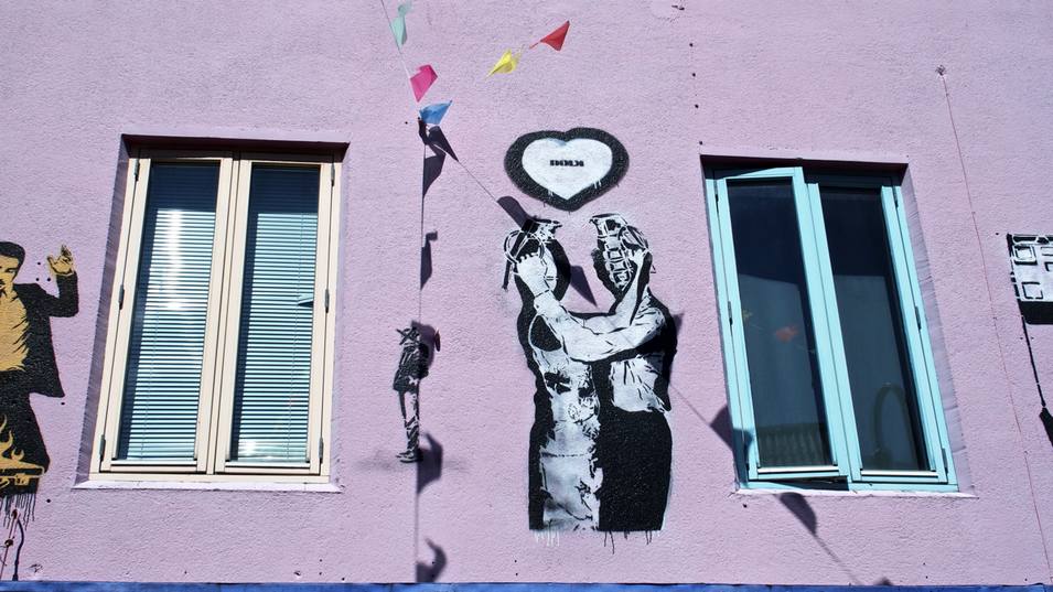 Auffällig sind die vielen Stencil-Graffiti in der Innenstadt im Stile von Herrn Banksy.
