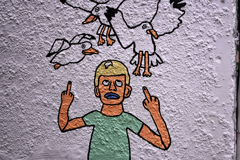 In den Städten, die ich besucht habe, sieht man wenige Graffiti, wie sie in Deutschland typisch sind. Die Städte sind weitestgehend frei von wilden Text-Tacks oder Text-Graffiti an Wänden von Gebäuden und Mauern.