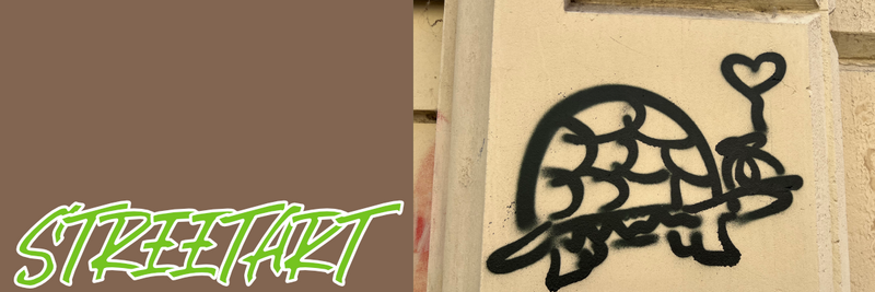 Ganz einfache Tier-Graffiti sind relativ neu in der Dresdner Neustadt. Es sind mal keine Katzen. Zu entdecken sind das Kamel, die Schildkröte und ein Schwein. Alles sind nur einfache Strich-Graffiti. Die Schildkröte hat dabei etwas BANKSY-Feeling mit dem Herz-Ballon. Einmal ist der Ballon noch in der „Hand”. Das andere Mal ist er schon unterwegs.