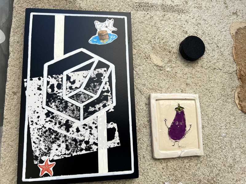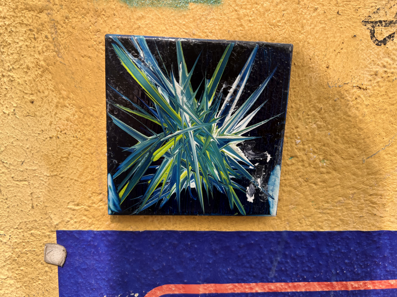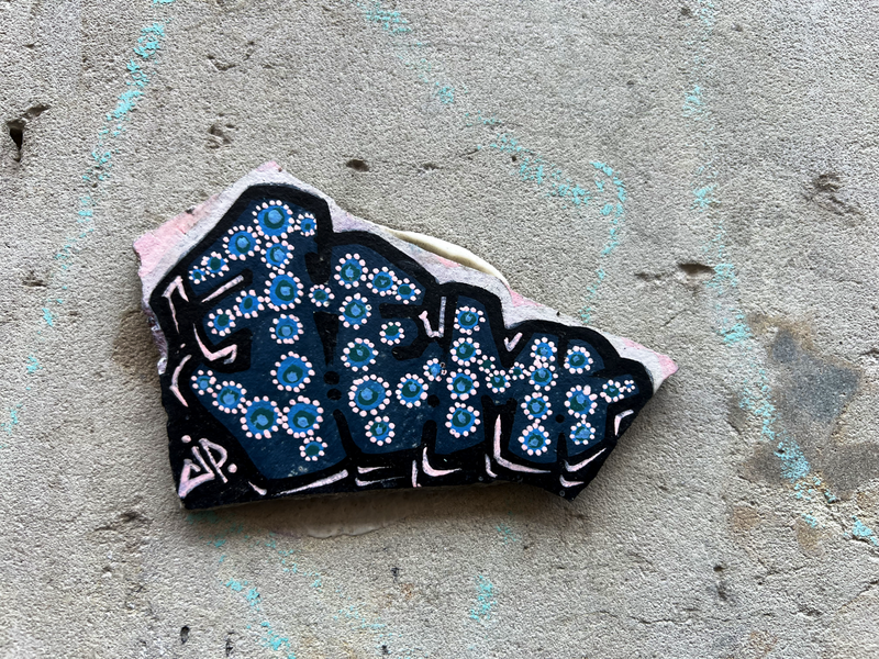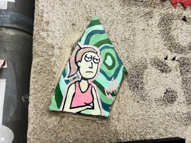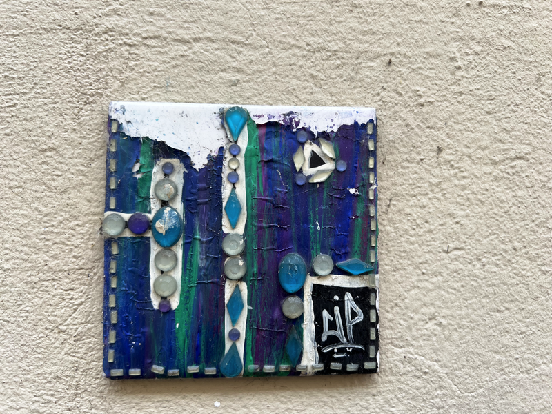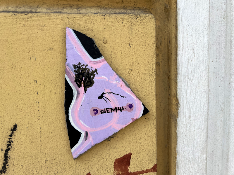 Auch hier gibt es wahrscheinlich Kunstwerke die eine kleine Serie bilden, wie z.B. die schwarzen Fließen mit den meist weißen, abstrakten Linienmuster. Es gibt aber auch richtige Kunstwerke, wie die Fliese mit dem blauen Mond und natürlich meine Lieblingskachel - das kleine Auberginen-Mädchen - einfach nur zauberhaft. Aber auch aus nur Kachelbruchstücken entstehen kleine Kunstwerke. Hier die zweite Sammlung von Graffiti-Fließen aus der Dresdener Neustadt: