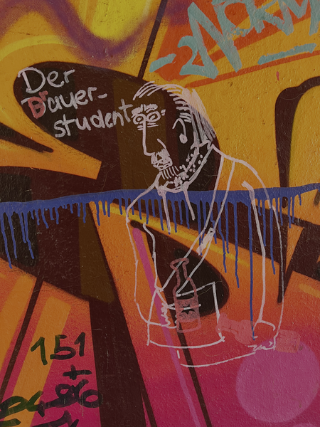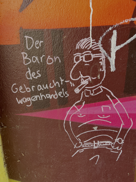 Ein zu sehen sind dort lustige Figuren mit Titel. Da-wo werden ganz verschiedene Charaktere aufs Korn genommen. Leider oder auch nicht hat ein anderer die Beschriftungen mit seinen eigenen Bemerkungen „überschmiert”. Eigentlich finde ich das nicht schön und auch nicht in Ordnung unter Graffiti-Künstlern. Aber so ist die Neustadt nun mal. Jeder hat seine eigene Meinung und hat damit auch nicht hinter dem Berg. Für die lustigen Figuren mit der manchmal doppelten Beschriftung: