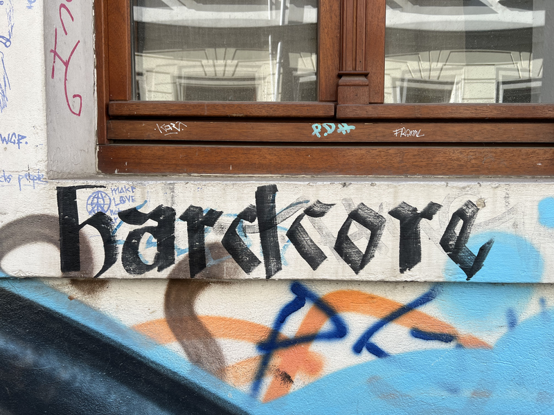 Oft sind diese Tags in sehr kantigen Schriftformen, die an die alten deutschen Schriften, wie die Textur oder Fraktur erinnern.