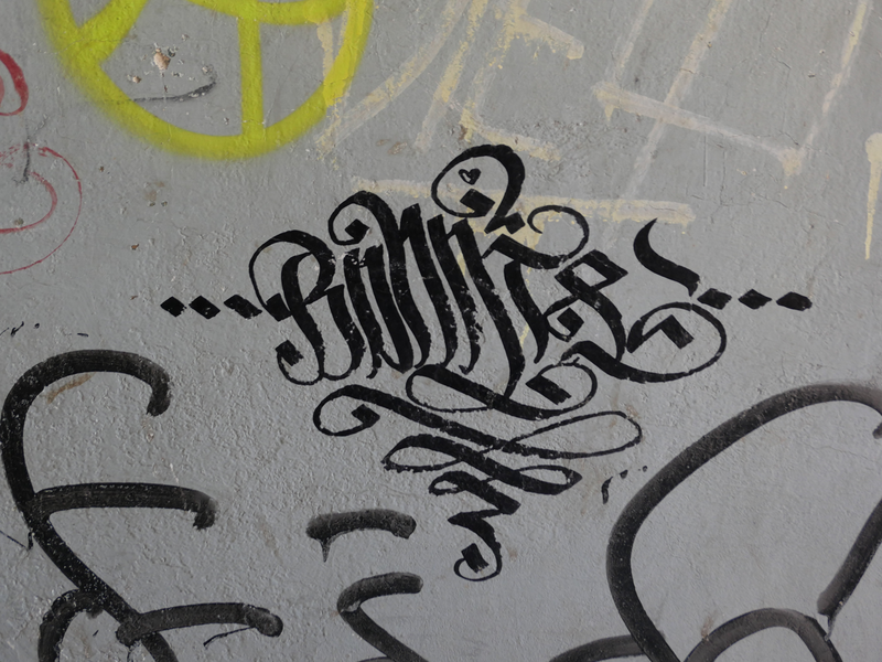 Graffiti-Tags müssen nicht immer hipp und modern sein. In der Dresdner Neustadt gibt es auch Writer, die ganz klassische und sehr kalligraphische Tags an die Wand bringen.