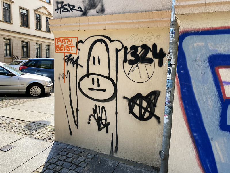 Streetart ist in Dresden sehr vielfältig. Mal sieht man opulente und großflächige Graffiti oder eben auch mit witziger Hand gesprühte Strich-Graffiti. Beides hat was. Hier die Streetart-News 05 aus Dresden.