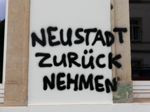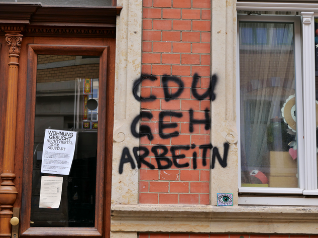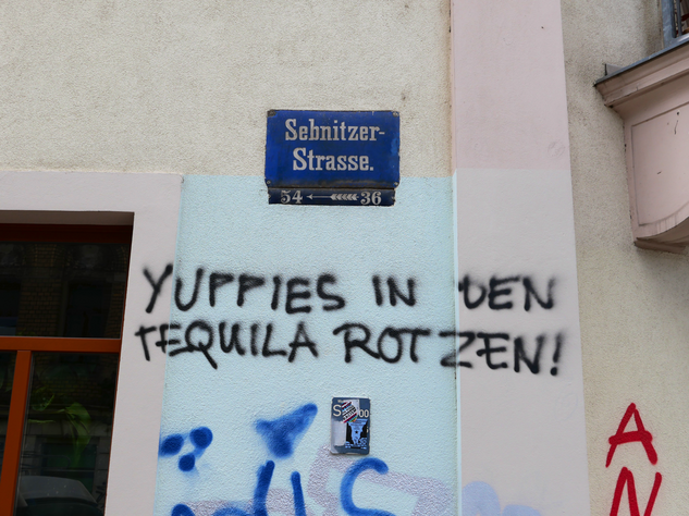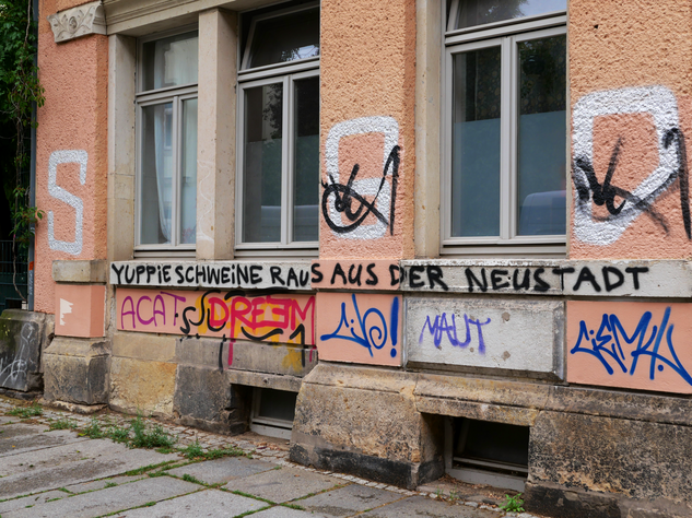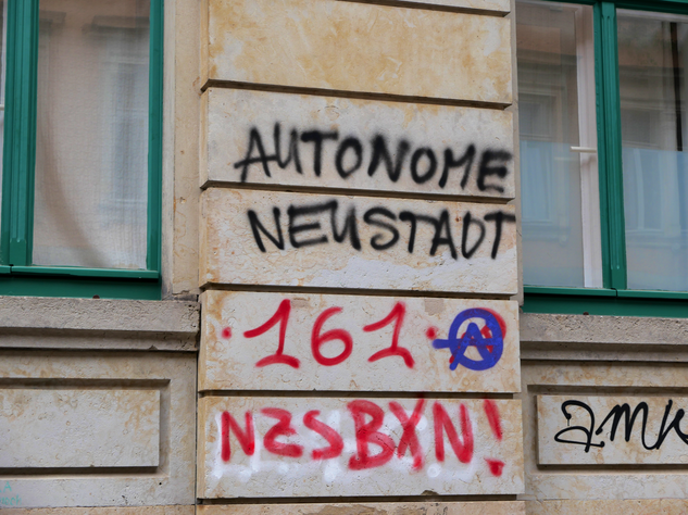 In der Neustadt ließt man allerdings ziemlich aggressive Botschaften. Die Macher dieser Nachrichten wollen Ihre alte Bunte-Republik-Neustadt (BRN) zurück.