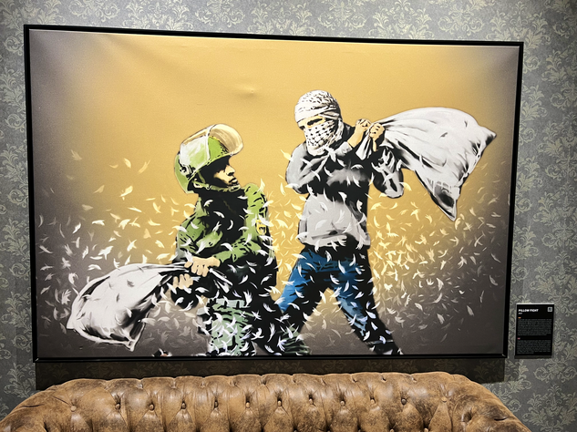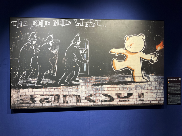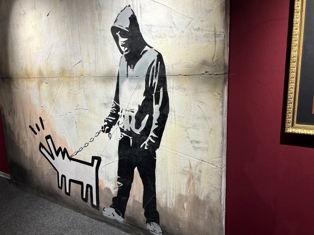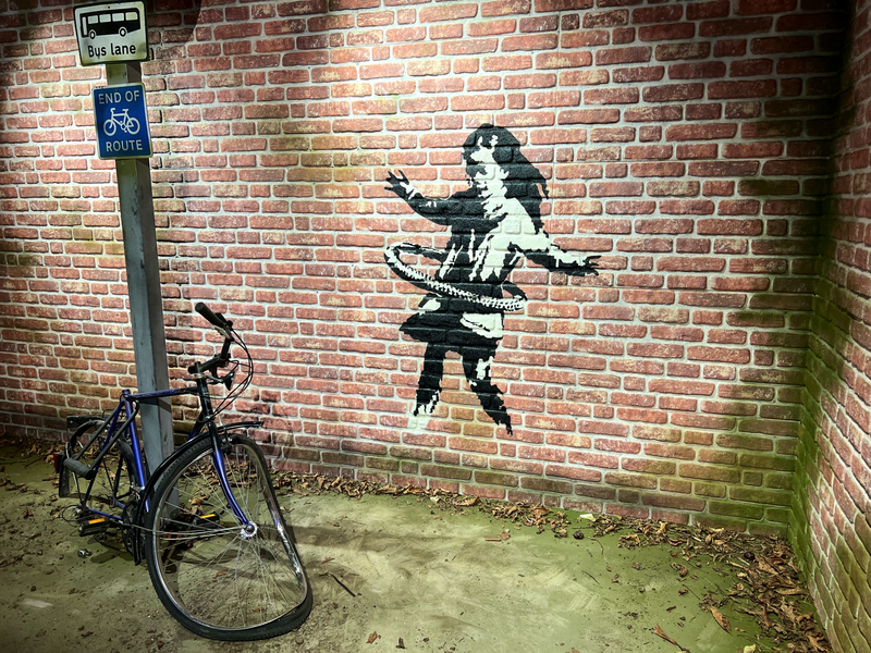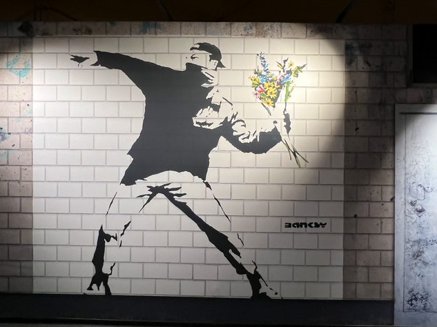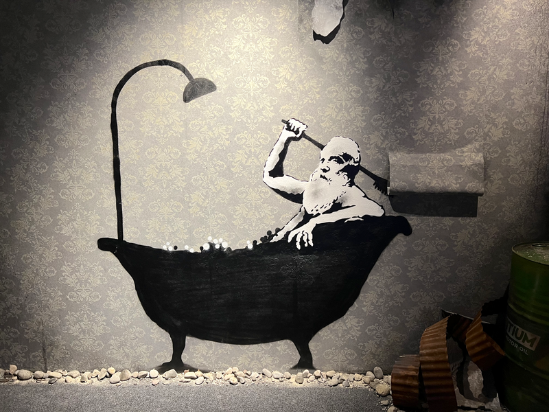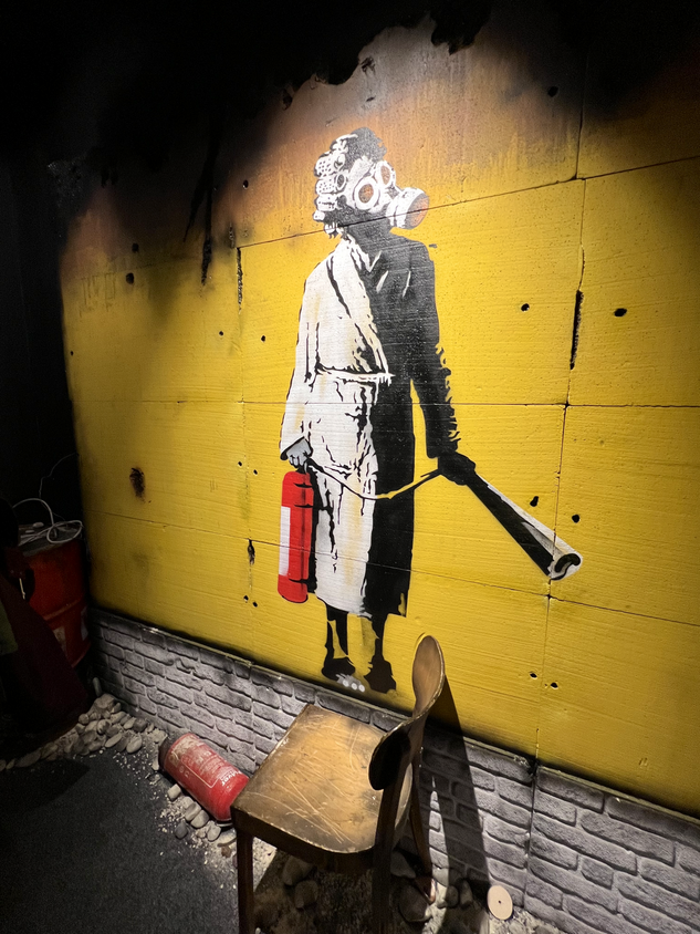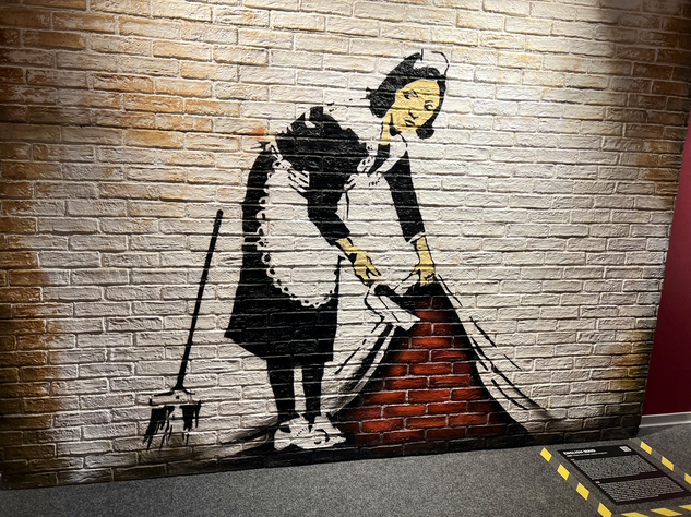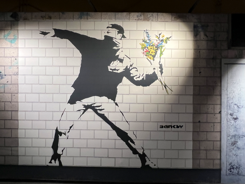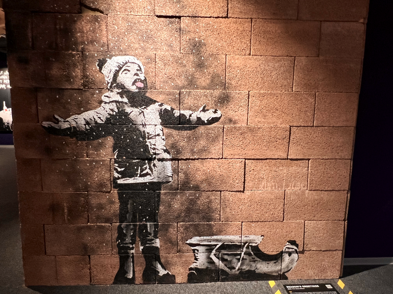 Unter dem Weihnachtsbaum lag die BANKSY - Biografie von Ina Brzoska mit dem Titel „BANKSY Unsichtbar”. Und in Dresden ist zur Zeit eine große, sehr sehenswerte Ausstellung zum britischen Künstler BANKSY. Als Streetart-Fan kommt man natürlich daran nicht vorbei. Die Ausstellung läuft unter dem Titel „The Mystery of Banksy” und mir hat besonders gefallen, das viele seiner Stecils wirklich als Kopien auf Wanden zu sehen waren und nicht nur als Fotos. Es gibt mehrere Videos in der Ausstellung zu Werken und Wirken des Künstlers. Also, man muss schon etwas Zeit mitbringen.