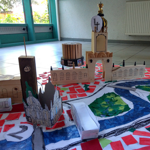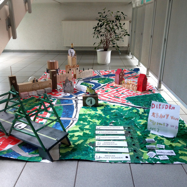 Die Mittelstufen haben sich dieses Jahr mit dem Thema "Unsere Stadt Dresden" beschäftigt. Im zweiten Halbjahr wurden einige Schülerinnen und Schüler kreativ und gestalteten eine Karte von Dresden. Im Wahlunterricht Holz wurde fleißig gesägt und gemalt, im Kunstunterricht der Klasse MS2 gerissen, geklebt und eine kleine Ausstellung arrangiert. Und ganz nebenbei können alle nochmal ihr Wissen zur Stadt und zu einzelnen Bauwerken auffrischen.