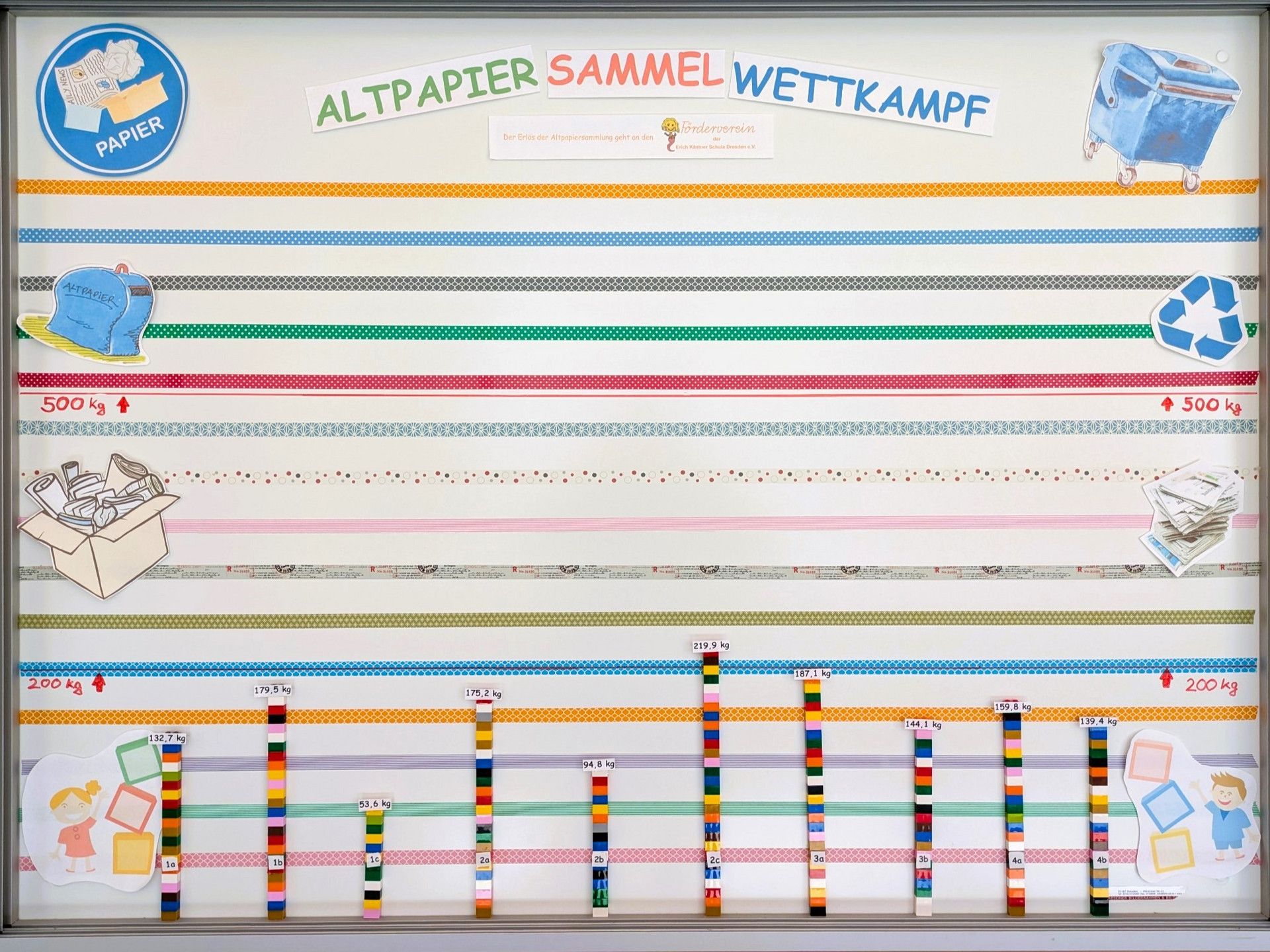 Der Förderverein ruft zum Altpapiersammelwettkampf auf. Welche Klasse sammelt wohl das meiste Altpapier? Die drei besten Klassen können dabei ein paar tolle Preise gewinnen. Das Geld, welches wir für das gesammelte Altpapier erhalten, kommt dann dem Förderverein unserer Schule zugute.