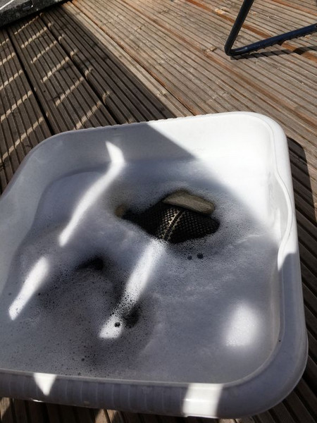 Nach dem Waschen im Seifenwasser