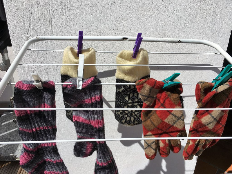 Nach 3 Stunden sind die Socken und die Handschuhe