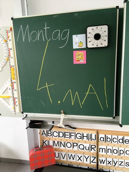 Julian aus der 1a hat dann die Tafel abgewischt und das richtige Datum