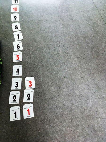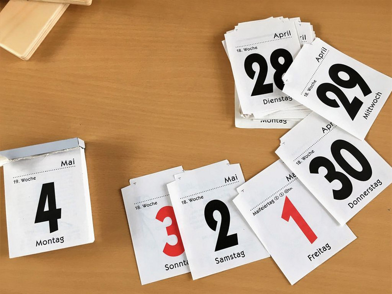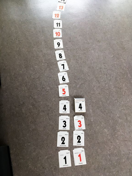 Nach dem Frühstück haben Mo und Julian Kalenderblätter sortiert.
