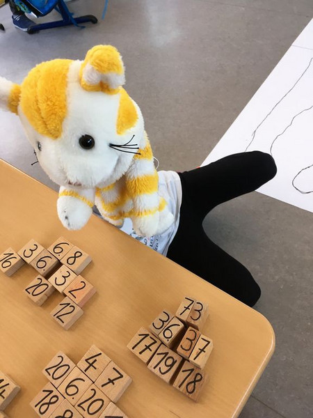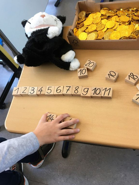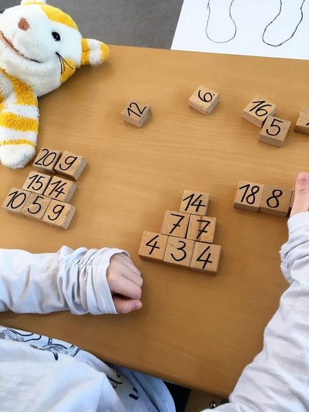 mit den Zahlenbausteinen eine Zahlenreihe gelegt.