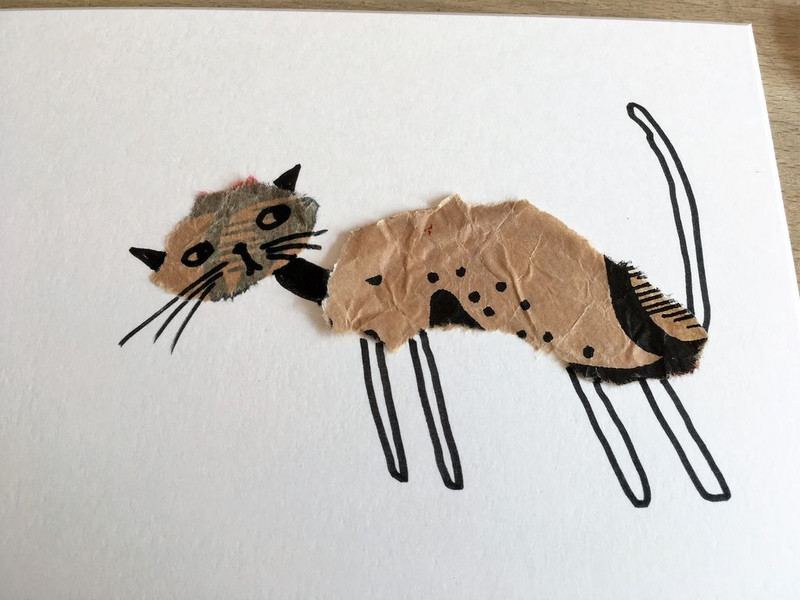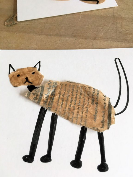 Schneide oder reiße eine Form für Kopf und Körper der Katze