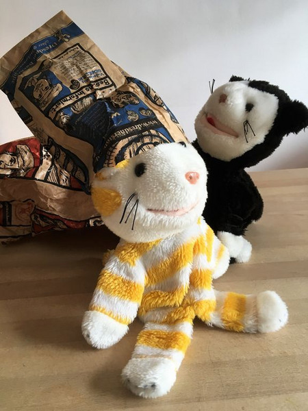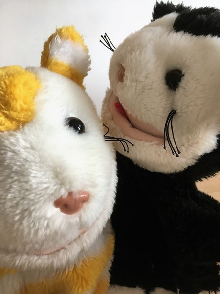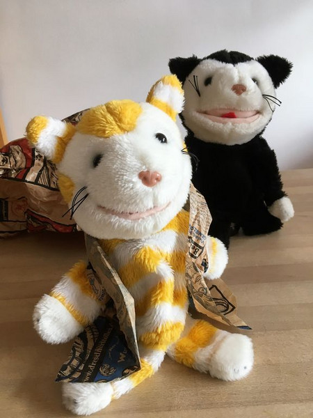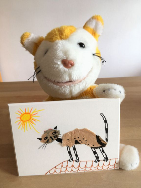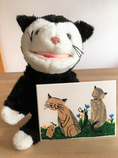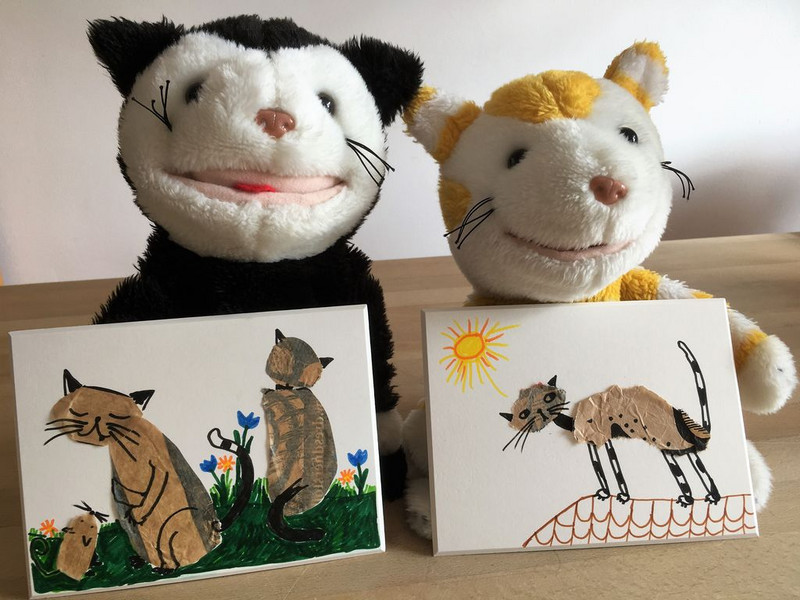 Mimi und Mo freuen sich über ihre kleinen Katzenbilder.