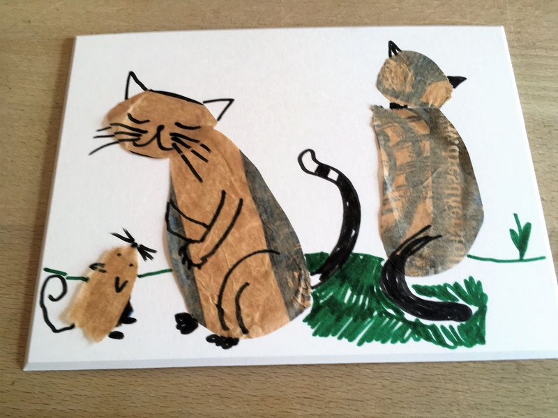 7. Zuletzt kannst du das Bild mit deinen Katzen noch farbig gestalten.