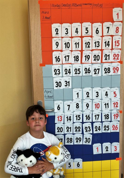 Als der fertige Kalender an der Tür hing, hat sich Julian mit Mimi