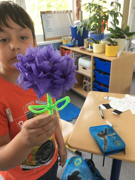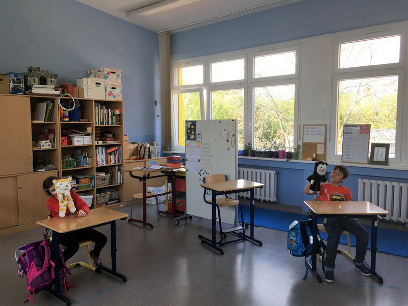 Vorher haben Zara und Julian an dem großen weißen Blatt