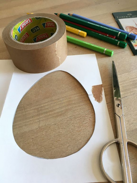 Sie holte ihre Buntstifte, Papier, Schere und Klebeband
