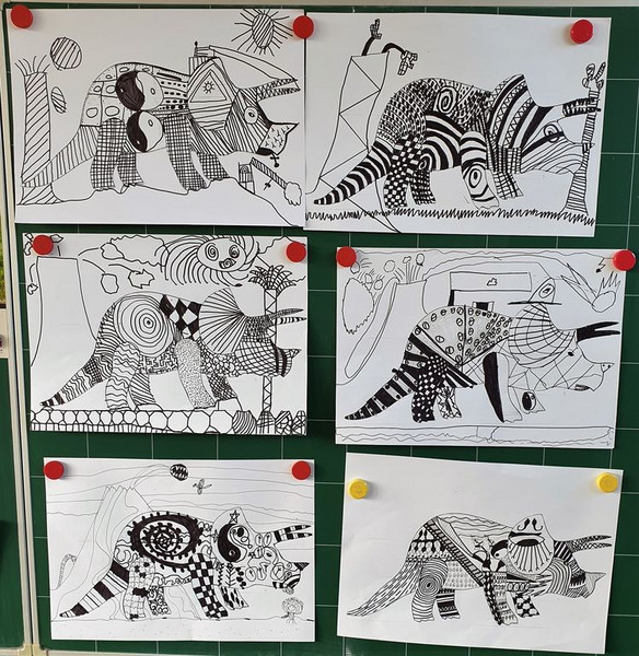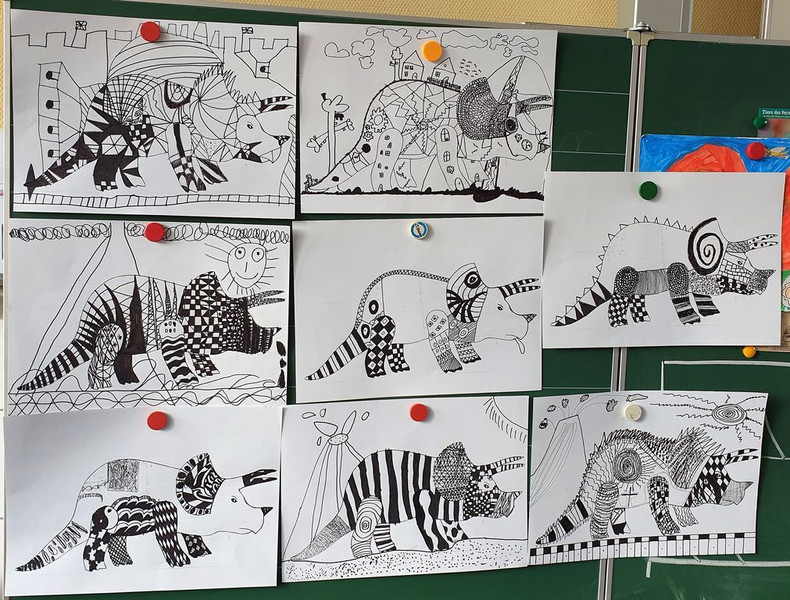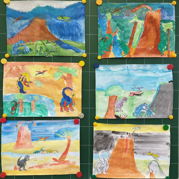 Fach Kunst - Dinolandschaft - Klasse 4b