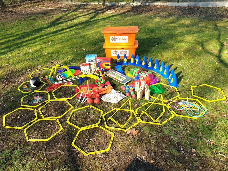 In der programmeigenen «fit4future-Spieltonne» sind verschiedene Spielmaterialien enthalten, welche die physiomotorische Fitness der Kinder fördern. Diese Spiel- und Bewegungsmaterialien machen unsere Hofpause nun noch ein Stück mehr zu einer "Bewegten Pause".
