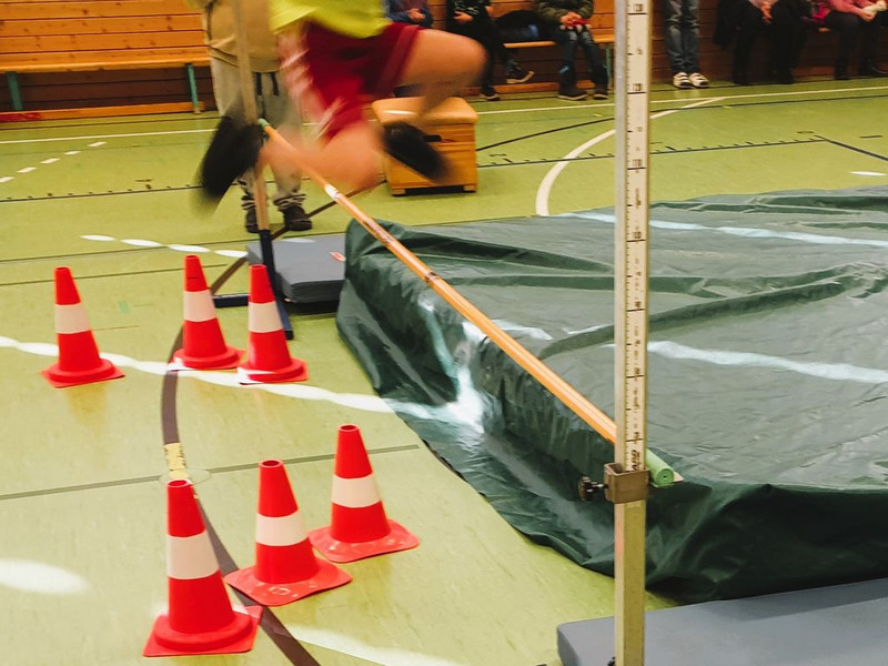 Unsere Schulmeisterschaft im Hochsprung Am Donnerstag, dem 9.Februar 2023, trafen sich ausgewählte Kinder aller Klassenstufen zu einem Hochsprung-Meeting. Wir wollten wissen, wer wohl in seiner Altersklasse so richtig hoch springen kann. Alle Kinder haben vorher schon fleißig im Sportunterricht trainiert und die Besten wollten nun zeigen, was sie können. Es starteten 9 Kinder in der Altersklasse 8/9 Jahre und 20 Kinder in der Altersklasse 10/11 Jahre. Alle waren sehr aufgeregt und die Fans der Springer und Springerinnen fieberten lautstark und fair mit ihren Favoriten mit. Es war ein sehr spannender und aufregender Wettkampf, da haben alle echt alles gegeben. Wir gratulieren allen Kindern dieser Meisterschaft, egal ob Gewinner oder Verlierer, ihr habt alle wirklich hart und fair gekämpft. Das war ein richtig toller und erlebnisreicher Sporttag für alle Kinder. |