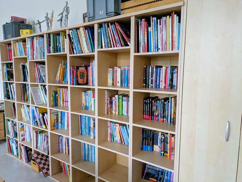 - In der Hortbibliothek befindet sich eine Flohmarktkiste. Die darin befindlichen Medien können Ihr Kind und Sie kostenfrei mitnehmen.