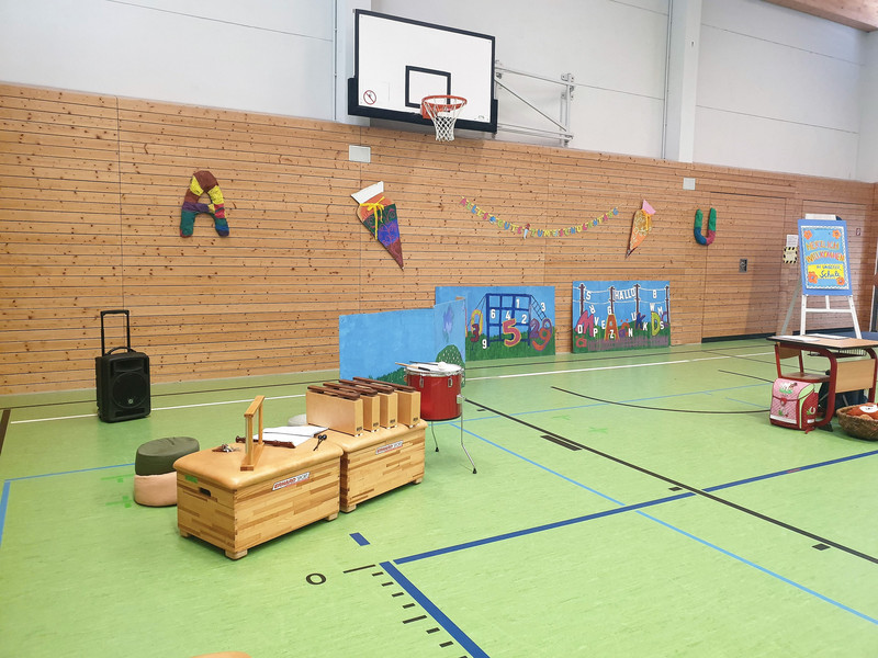 und den Kindern und Erwachsenen zum Schuleinführungsprogramm vorgespielt.