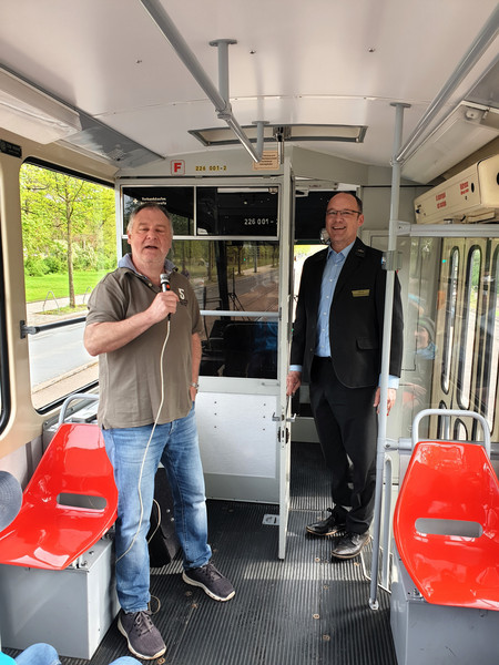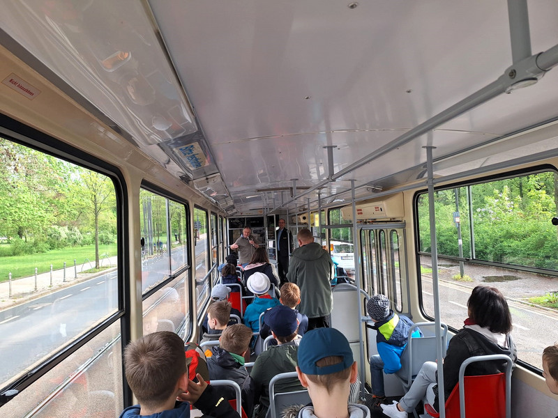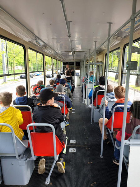 Am 10. April 2024 starteten alle Kinder der 3. Klassen zu einer Exkursion mit der Kinderstraßenbahn "Lottchen". Da die Original "Lottchen"-Bahn an diesem Tag gerade zur Wartung in der Werkstatt war, hatten wir das Vergnügen mit dem historischen Tatratriebwagen T6A2 mitzufahren. Die Tour führte dabei durch die historische Dresdner Altstadt, die Dresdner Neustadt und zum Blauen Wunder am Schillerplatz. Dabei erfuhren die Kinder von unserem Stadtführer Herrn Stresow vieles zur Stadtgeschichte von Dresden aber auch besondere und lustige Begebenheiten zu Dresden und zu "Lottchen". So war es für alle kaum zu glauben, dass sogar schon ein Zirkuselephant mit "Lottchen" gefahren ist, er konnte nur nicht vorwärts Treppen steigen, also musste er rückwärts, mit dem Hintern zuerst, wieder aussteigen. Besonders interessant war auch, als Herr Stresow uns erklärte, dass man auch Haifischzähne von Haifischen aus der Urzeit in Dresden finden kann, da ja vor vielen Millionen Jahren hier ein riesiges Meer gewesen ist. Alle staunten auch über die vielen schönen und geschichtsträchtigen Gebäude in unserer Stadt, wie zum Beispiel das königliche Schloß, den prunkvollen Zwinger, die majestätischen Elbschlösser, die schicken Gründerzeitvillen, den "Goldenen Reiter" und die orientalische Tabakfabrik "Yenize". Selbstverständlich fuhren wir auch am Erich-Kästner-Museum vorbei und konnten Erich Kästner auf der Mauer sitzen sehen (das war natürlich nur eine Statue von ihm als kleiner Junge). Alle Kinder waren sehr interessiert, konnten viele Fragen loswerden und hatten viel Spaß bei den lustigen Geschichten, die Herr Stresow auf Lager hatte. Das war wirklich ein rundum gelungener Ausflug.