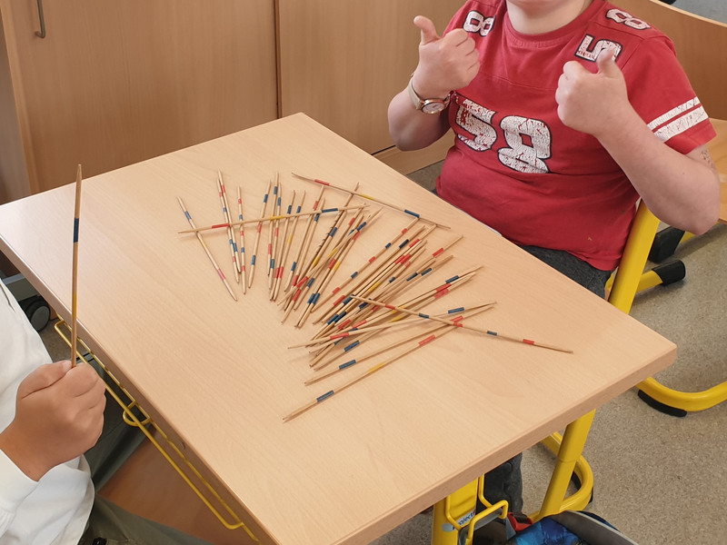 Eine neue Pausenbeschäftigung von den Kindern der Klasse 3b ist der LEGO-Spieletisch. Auch das "Erich Kästner Memory", welches im letzten Schuljahr anlässlich des Erich Kästner Jubiläums entstanden ist, wird gerne genutzt. Natürlich gibt es auch noch viele andere Dinge, mit denen sich die Kinder in der Pause beschäftigen. Riesenspaß machen zum Beispiel auch das Seilspringen auf dem Gang, lustige Sachen basteln, mit den anderen "Mensch ärgere Dich nicht" spielen, beim Mikado Nerven wie Drahtseile haben oder gemeinsam Pokémon-Bücher und Comics anschauen.