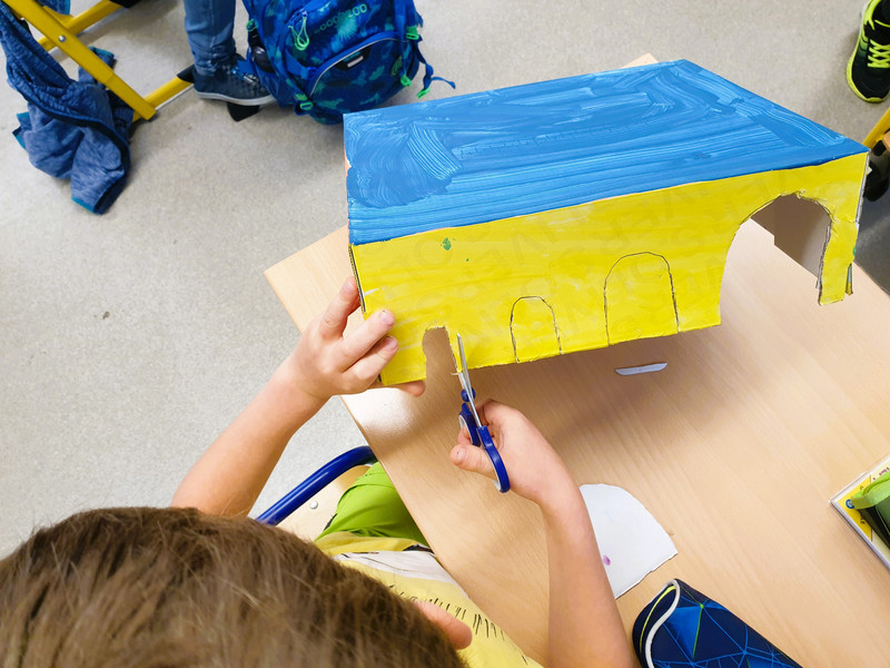 Die Klassen 3a und 3b haben für unser "Grünes Klassenzimmer" zwei Insektenhotels gebaut. Dazu mussten alle Einzelteile mit umweltfreundlichen Farben bemalt werden und nach dem Trocknen wurde alles zusammengeleimt und verschraubt. Dabei kam sogar ein Akkuschrauber zum Einsatz, wie bei richtigen Handwerkern, das war echt cool. Zum Schluss wurden die Insektenhotels durch die Kinder an unserem Gartenhäuschen angebracht und die Klassen werden dort immer mal wieder nachschauen, ob schon Insekten eingezogen sind und auch sonst soweit alles noch in Ordnung ist. Während Farbe und Leim trockneten haben die Kinder Interessantes zum Thema "Wiese und Bewohner der Wiese" erfahren, konnten knifflige Aufgaben dazu lösen und bastelten zur Musik "Der Hummelflug" von Rimski-Korsakow eigene Finger-Hummeln. Das war ein wirklich ein toller Tag.