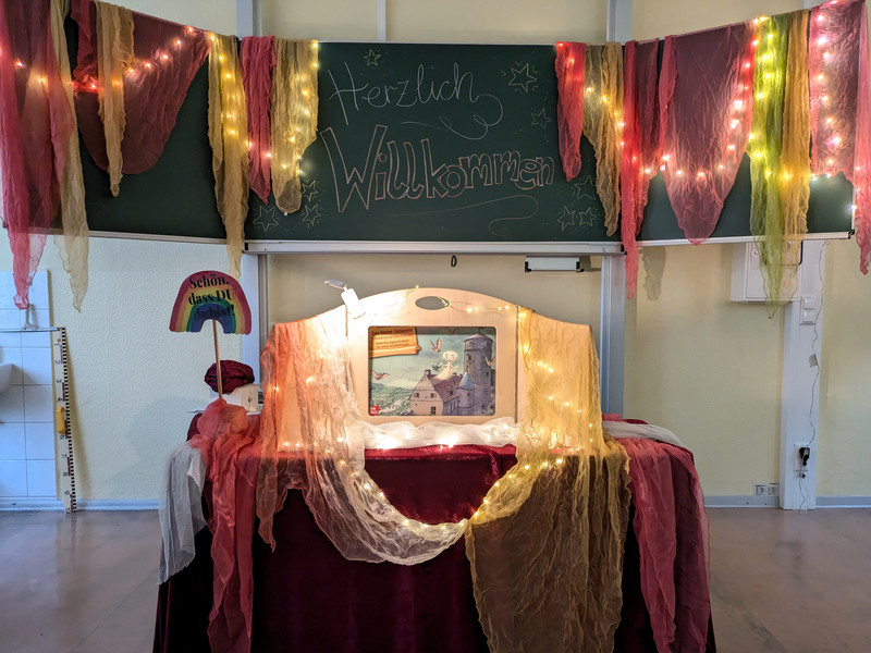 Bei unserem Kamishibai-Erzähltheater konnten die Kinder den Geschichten vom Grolltroll, von Lindbergh - der fliegenden Maus, vom Grüffelo, vom kleinen Gespenst, von Ferri - dem mutigen Fisch, von der Zeit, als die Raben noch bunt waren und von einer wundersamen Nacht in der Bibliothek mit Fuchs, Maus und Huhn lauschen. Liebevoll und originell vorgelesen wurden die Geschichten von Frau Zänker und Herrn Walter, vielen herzlichen Dank dafür und für die Organisation dieses tollen Angebotes.