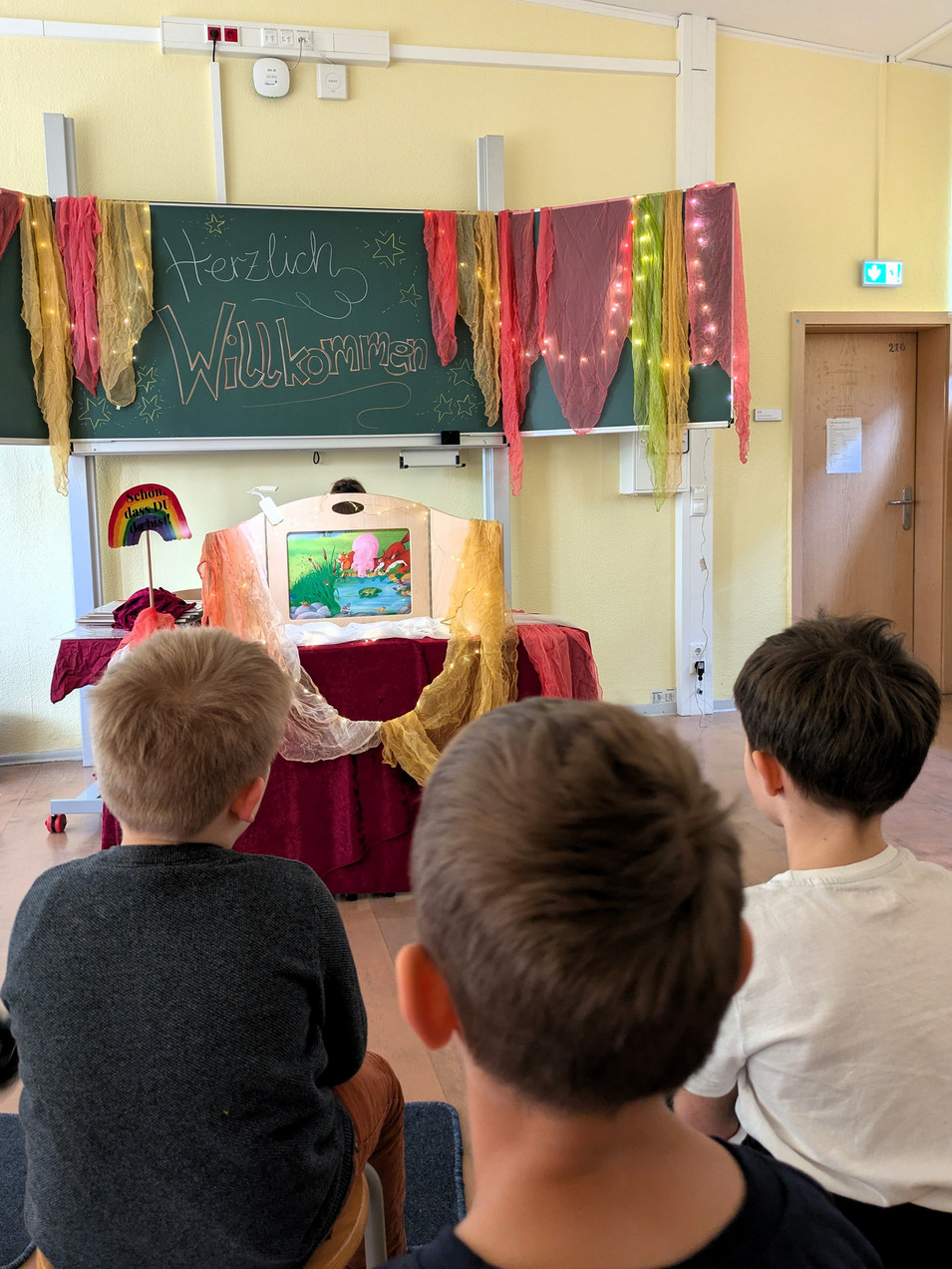Und um dieser besonderen Zeit mehr Ausdruck zu verleihen und das Interesse am Lesen noch ein wenig mehr zu wecken, gab es auch in diesem Jahr wieder für alle Kinder unserer Schule unser Kamishibai-Erzähltheater zu erleben. Jede Klasse konnte in dieser Woche einmal in unserem Erzähltheater vorbeikommen und 2 bis 3 spannenden, nachdenklichen oder lustigen Geschichten zuhören.