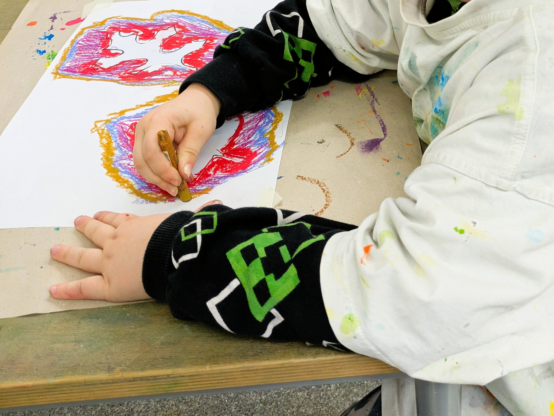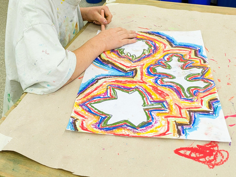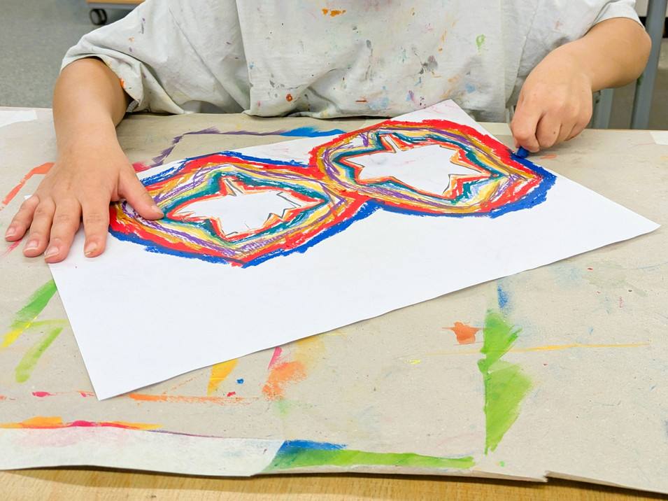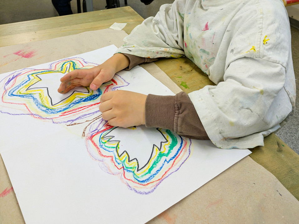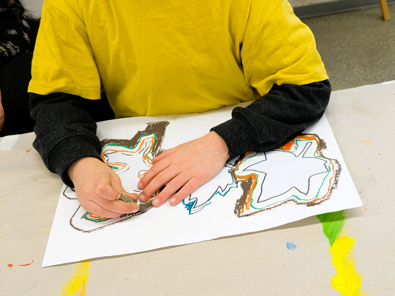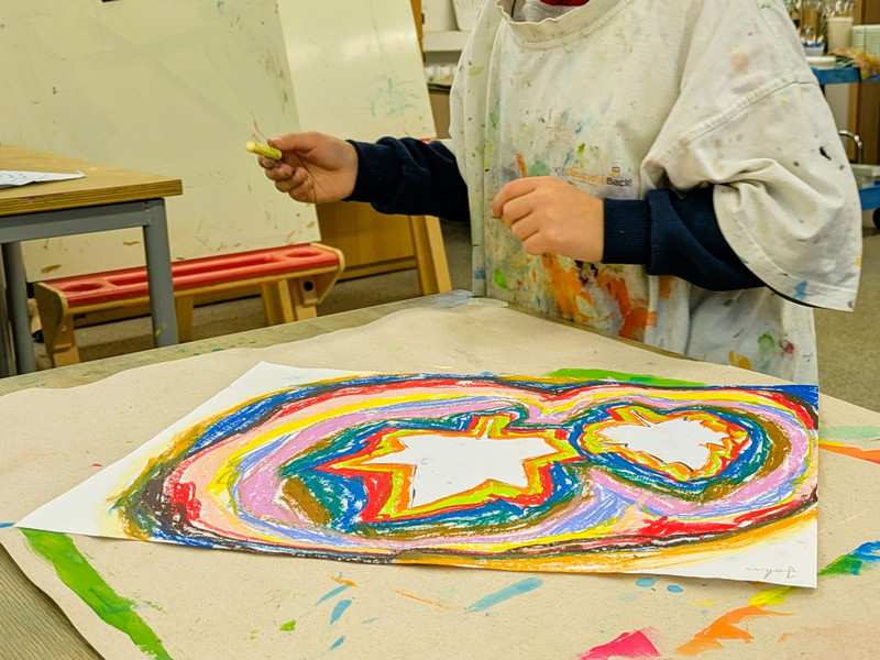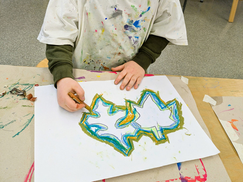 Die Blätter von verschiedenen Bäumen eignen sich auch sehr gut als Vorlage für den Kunstunterricht. Dafür legten die Kinder der Klasse 1c verschiedene Laubblätter auf ein Blatt Papier und umrandeten diese mit vielen verschiedenen Wachsmalstiften. Das ergab einen tollen Farbeffekt, der auf einem schwarzen Hintergrund noch einmal besonders intensiv wirkte.