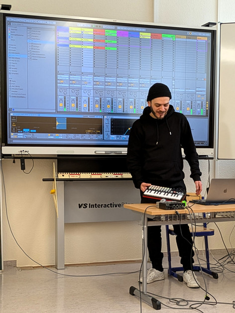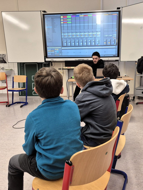 Nach einer Anfangspräsentation sowie einer Vorstellung der Bandmitmitglieder und ihren Instrumenten, arbeiteten die Kinder gemeinsam mit den Musikern und Musikerinnen in unterschiedlichen Workshops rund um das Thema Musik. Beim anschließendem Abschlusstreffen aller Gruppen wurde gemeinsam geschaut und gelauscht, was in den einzelnen Workshops zu Themen wie Flötenbau, Rap, Gesang, Rhythmus, Producing und Percussion so alles Tolles entstanden ist.