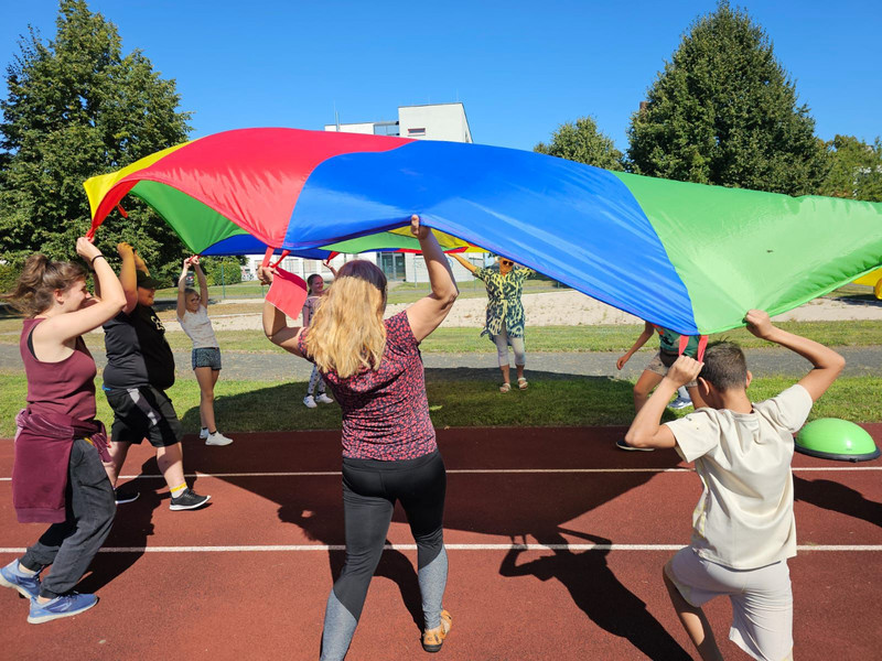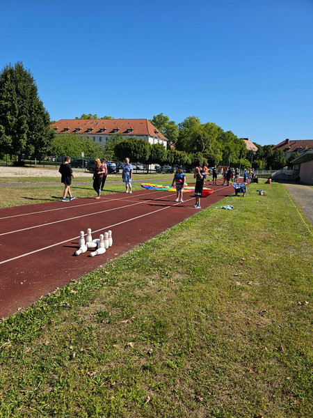Am 18. August hieß es: raus aus dem Klassenzimmer, rein ins Sportfest! Nach einer gemeinsamen Erwärmung starteten die Schülerinnen und Schüler voller Energie an den verschiedenen Stationen: